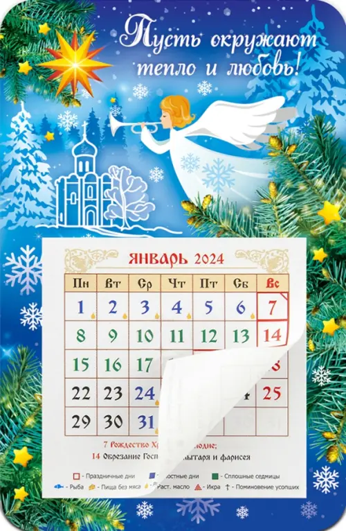 Календарь-магнит с отрывным блоком на 2024 год Пусть окружает тепло и любовь. Ангел