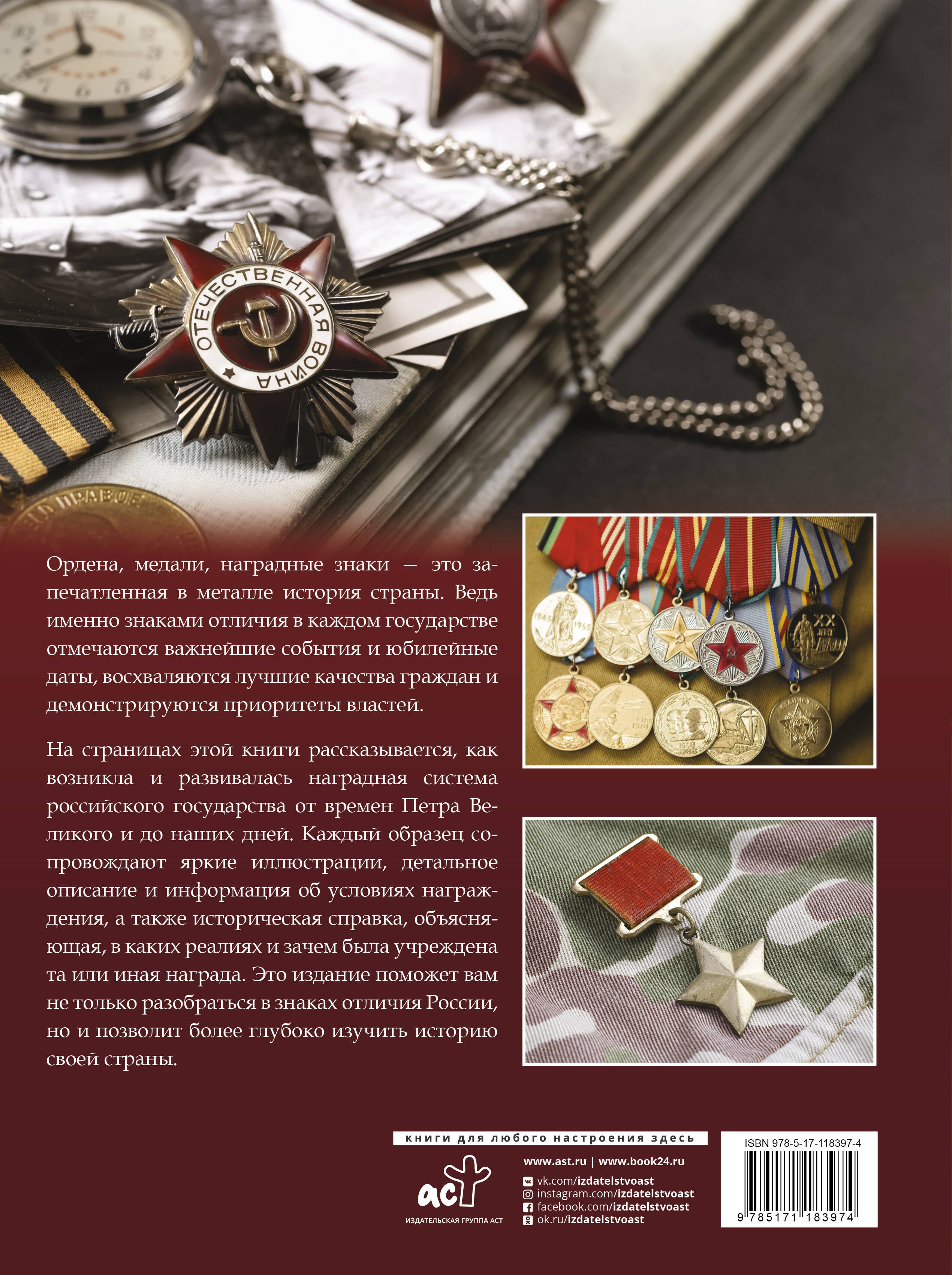 Ордена, медали, наградные знаки - это запечатленная в металле история страны. Ведь именно знаками отличия в каждом государстве отмечаются важнейшие события и юбилейные даты, восхваляются лучшие качества граждан и демонстрируются приоритеты властей. На страницах этой книги рассказывается, как возникла и развивалась наградная система российского государства от времен Петра Великого и до наших дней. Каждый образец сопровождают яркие иллюстрации, детальное описание и информация об условиях награждения, а также историческая справка, объясняющая, в каких реалиях и зачем была учреждена та или иная награда. Это издание поможет вам не только разобраться в знаках отличия России, но и позволит более глубоко изучить историю своей страны.| Издательство | ИЗДАТЕЛЬСТВО "АСТ" |