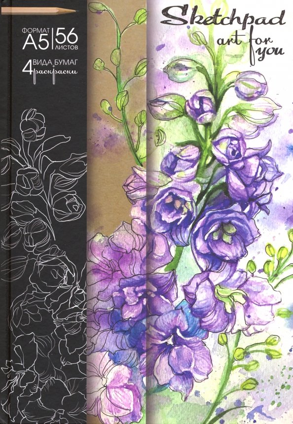 Скетчпад "Цветы" (56 листов, А5, твердая обложка) (49089)