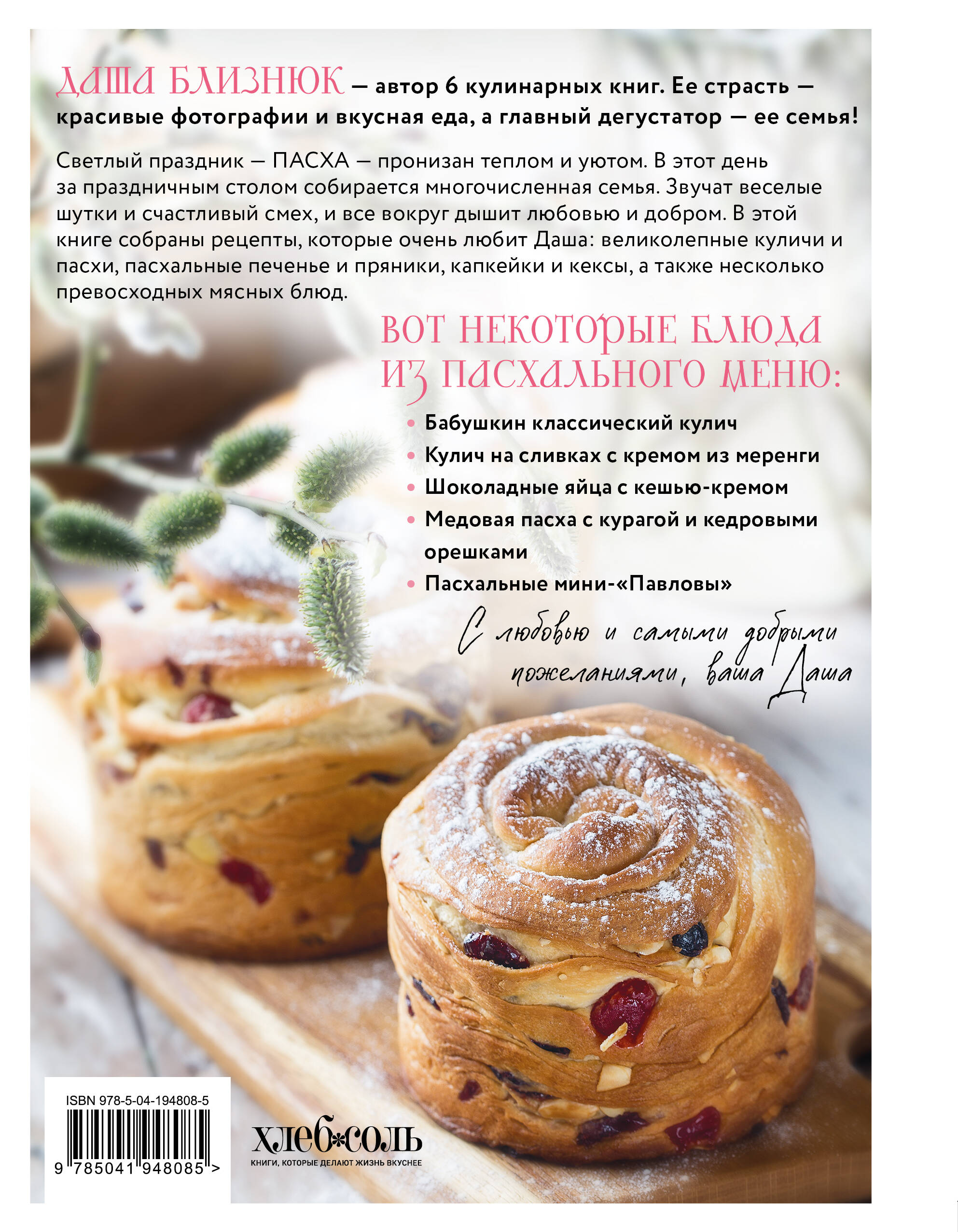 Как испечь куличи, чтобы они получились как у бабушки? Что делать, чтобы они поднялись, пропеклись, не подгорели? Как правильно приготовить глазурь для украшения? Бывают ли пасхи без творога? Чем наполнять тесто и творожную массу для лучшего вкуса кулича и пасхи? Что такое айсинг и краффин? Какие секреты есть у красящихся яиц? На все эти и другие вопросы отвечает Даша Близнюк своими подробными описаниями ингредиентов и шагов приготовления. Классический бабушкин кулич, шоколадные куличи и пасхи, заварная, ореховая и медовая пасхи, пасхальные печенья и пряники и т.д. ― вас ждет великолепное разнообразие этих особенных, присущих именно русской кухни изделий и авторская интерпретация пасхальной выпечки, пришедшей к нам из европейской традиции.| Издательство | ООО "Издательство "Эксмо" |