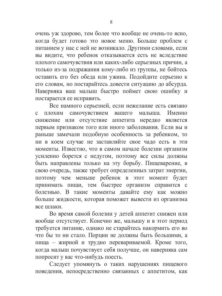 Ваш малыш плохо ест: он отказывается от пищи или соглашается есть только любимые им, но не совсем полезные для его здоровья блюда, во время приема пищи он часто отвлекается, основной его интерес направлен не на процесс поглощения предложенных блюд, а на посторонние предметы… Прочитав эту книгу практикующего детского психолога Алевтины Луговской, вы узнаете причины такого поведения вашего малыша, получите необходимые рекомендации, как заинтересовать ребенка процессом приема пищи, как сделать, чтобы каждый обед или ужин он воспринимал в качестве маленького праздника.| Издательство | Т8 RUGRAM |