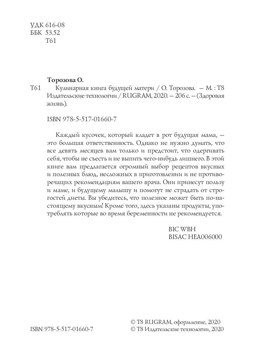 Каждый кусочек, который кладет в рот будущая мама, - это большая ответственность. Однако не нужно думать, что все девять месяцев вам только и предстоит, что одергивать себя, чтобы не съесть и не выпить чего-нибудь лишнего. В этой книге вам предлагается огромный выбор рецептов вкусных и полезных блюд, несложных в приготовлении и не противоречащих рекомендациям вашего врача. Они принесут пользу и маме, и будущему малышу и помогут не страдать от строгостей диеты. Вы убедитесь, что полезное может быть по-настоящему вкусным! Кроме того, здесь указаны продукты, употреблять которые во время беременности не рекомендуется.