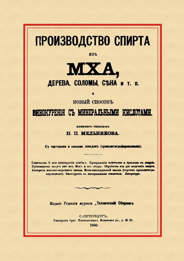 Аннотация: Производство спирта из мха, дерева, сена и т. п. Новый способ винокурения с минеральными кислотами