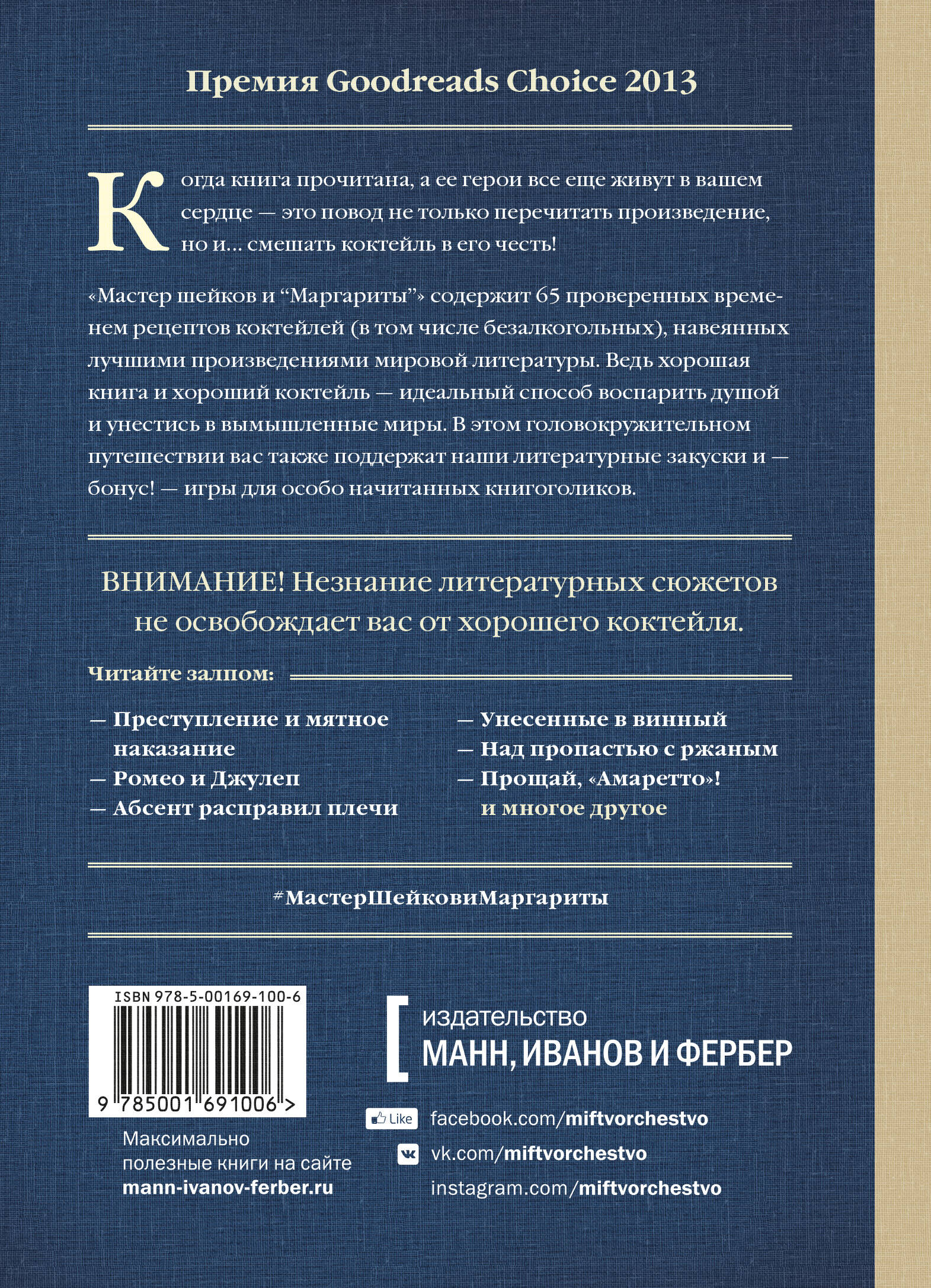 Подкрепитесь коктейлем и освежите свои литературные знания с потрясающей книгой, в которой шедевры мировой литературы сочетаются с классическими и ультрасовременными коктейлями. Не только для литературоведов!| Издательство | МАНН, ИВАНОВ И ФЕРБЕР ООО |