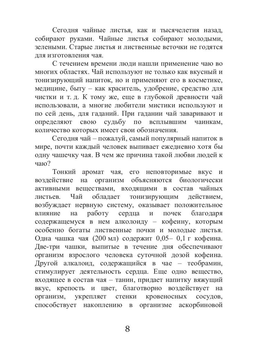 Книга, представленная вниманию читателей, содержит массу интересной и полезной информации о самом, пожалуй, популярном и любимым многими напитке - чае. Настоящие ценители этого напитка наверняка по достоинству оценят рецепты приготовления чаев, приведенные в данной книге. Поправить и сохранить свое здоровье вам помогут лекарственные чаи, которым посвящена отдельная глава. Для милых дам небезынтересной будет информация о применении чая в косметических целях. Нетрадиционное использование чая поможет решить мелкие бытовые проблемы и усовершенствовать некоторые рецепты знакомых блюд. Специальная глава книги содержит материал о том, как ухаживать за «чайным» грибом и применять его настой в различных целях.| Издательство | Т8 RUGRAM |