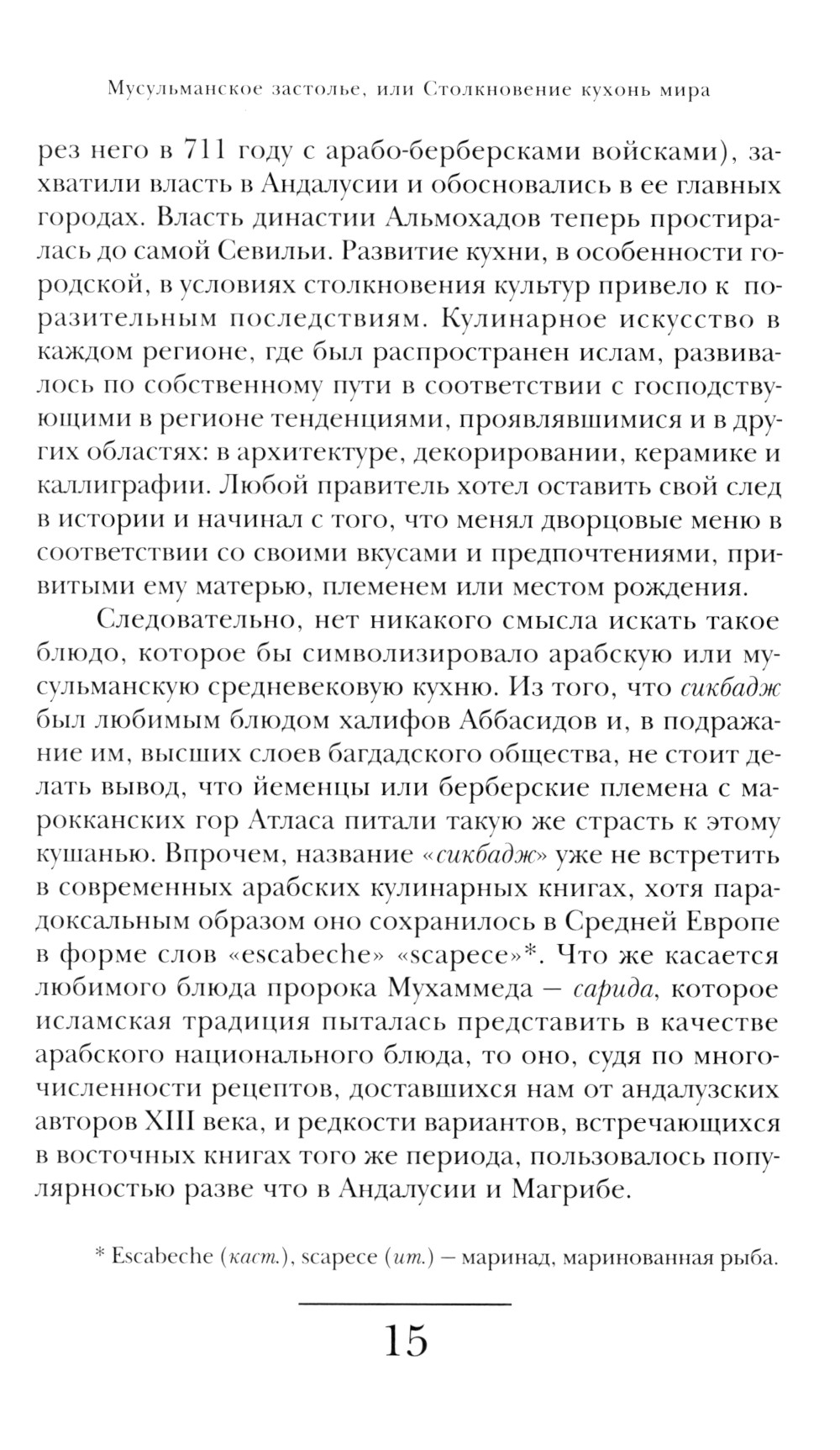 В этой книге рассказывается, как создавалась гастрономическая культура исламского мира, объединившая самые разнообразные традиции - древнегреческую и персидскую, древнеримскую и китайскую, индийскую и африканскую... Речь идет о культуре мусульманских праздников (прежде всего, Рамадана) и «путешествии вкусов» из Багдада в Кордову и из Туниса в Палермо; о любимом блюде пророка Мухаммеда и о том, можно ли во время трапезы пить пальмовое вино; о кухне кочевников аравийских пустынь и гурманов садов Андалусии; кухне утонченной и кухне грубой; кухне стран Магриба и кухне «Тысячи и одной ночи»... История кухни здесь становится не только увлекательным рассказом, но и подробным комментарием к рецептам, составившим едва ли не основное содержание книги, помогает ближе познакомиться с культурой исламского мира.| Издательство | Новое литературное обозрение |