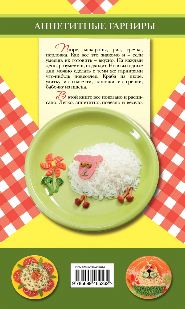 Пюре, макароны, рис, гречка, перловка. Как все это знакомо и - если умеешь их готовить - вкусно. На каждый день, разумеется, подходит. Но в выходные дни можно сделать с теми же гарнирами что-нибудь повеселее. Краба из пюре, улитку из спагетти, тапочки из гречки, бабочку из пшена.