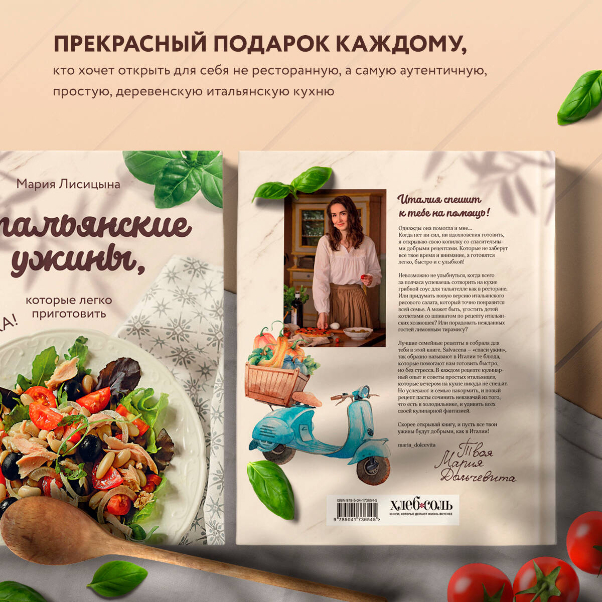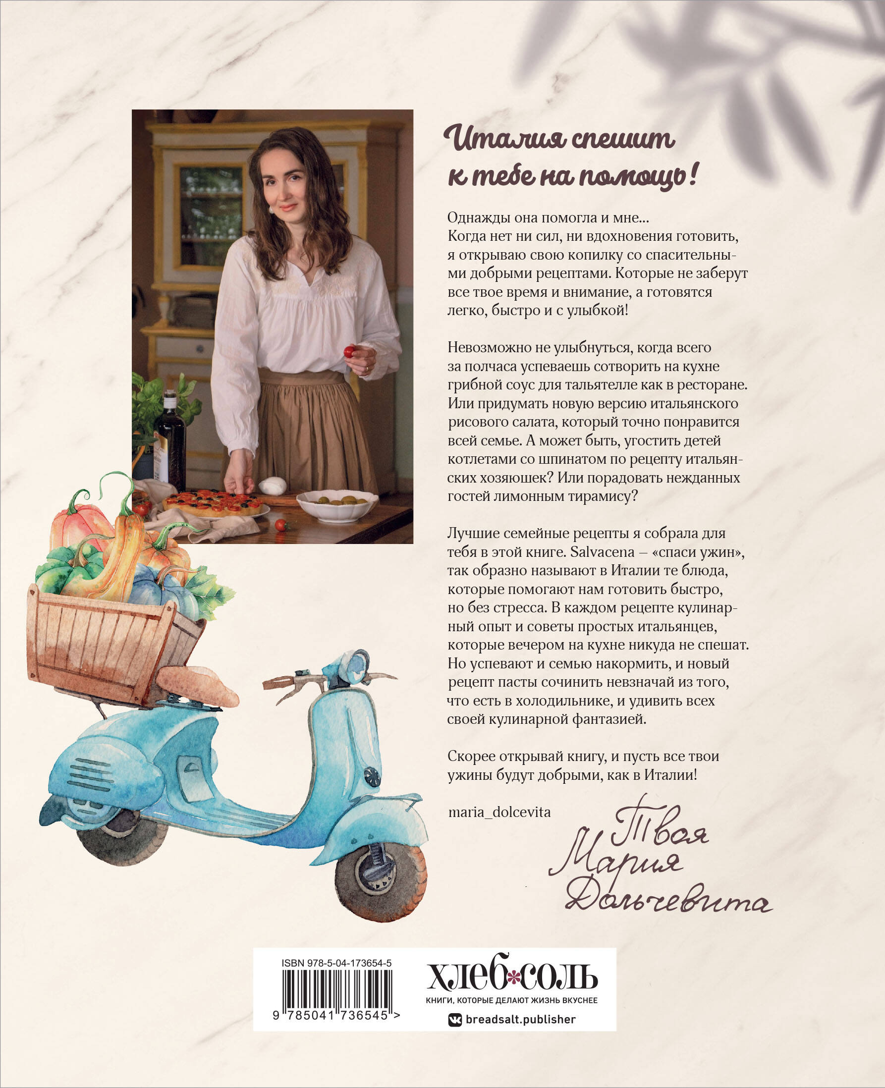 «Когда нет ни сил, ни вдохновения готовить, я открываю свою копилку со спасительными добрыми рецептами. Которые не заберут все твое время и внимание, а готовятся легко, быстро и с улыбкой! Невозможно не улыбнуться, когда всего за полчаса успеваешь сотворить на кухне грибной соус для тальятелле как в ресторане. Или придумать новую версию итальянского рисового салата, который точно понравится всей семье. А может быть, угостить детей котлетами со шпинатом по рецепту итальянских хозяюшек? Или порадовать нежданных гостей лимонным тирамису? Лучшие семейные рецепты я собрала для тебя в этой книге. Salvacena - «спаси ужин», так образно называют в Италии те блюда, которые помогают нам готовить быстро, но без стресса. В каждом рецепте кулинарный опыт и советы простых итальянцев, которые вечером на кухне никуда не спешат. Но успевают и семью накормить, и новый рецепт пасты сочинить невзначай из того, что есть в холодильнике, и удивить всех своей кулинарной фантазией. Скорее открывай книгу, и пусть все твои ужины будут добрыми, как в Италии!» - Мария Лисицина| Издательство | ООО "Издательство "Эксмо" |