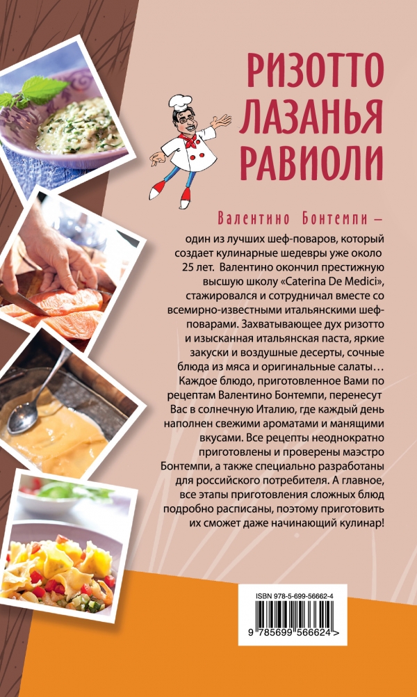 Итальянская кухня - одна из самых ароматных и утонченных. В этой книге итальянский шеф-повар Валентино Бонтемпи расскажет вам, как быстро и легко приготовить восхитительное ризотто, нежные равиоли и сочную лазанью. Здесь вы найдете рецепты ризотто с чернилами каракатицы, равиолей из сыра буррата или лазаньи по-эмильянски, а также множество других, которые сделают солнечную Италию еще ближе!