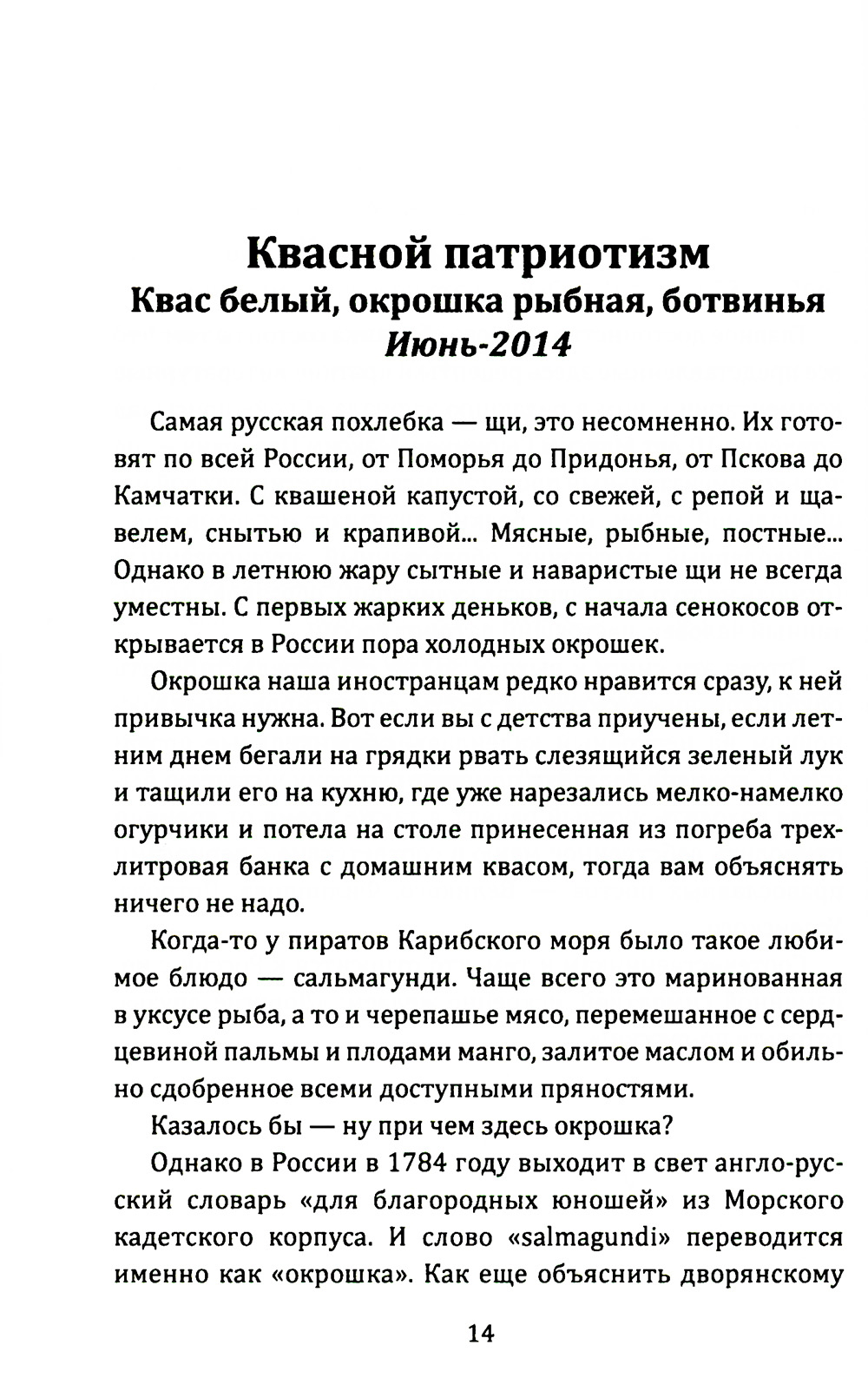 В этом сборнике представлены рецепты исконно русских (и немногих заимствованных) блюд, опубликованные в журнале Никиты Михалкова «Свой» в течение почти десяти лет. Собирал эти «технологии» приготовления и регулярно делился ими с читателями издания самый авторитетный на сегодня знаток и теоретик в области традиционной национальной кухни, искусный кулинар и успешный ресторатор Максим Сырников. Проверенная веками классика - гурьевская каша, котлета «Пожарская», расстегай, вяземский пряник и т.д. - тут гармонично сочетается с почти забытыми названиями, такими, например, как «перепечи», «кундюмы», «ушное», «кулейка»... Книга будет интересна не только начинающим поварам, но и всем, кто хочет питаться по-русски, испробовать яства, которые предпочитали наши далекие предки.| Издательство | Родина |