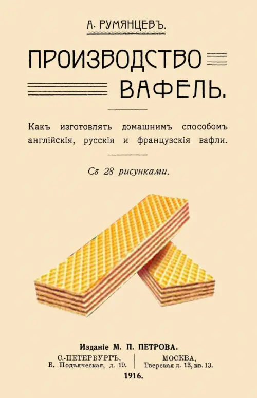 Репринт с издания. С 28 рисунками. 2-е изд. СПб. ; Москва. Изд. М. П. Петрова, 1916. Румянцев - преподаватель С. -Петербургской кулинарной школы. Сборник редких старинных рецептов. Тираж 30 экз. выполнен по технологии print-on-demand.