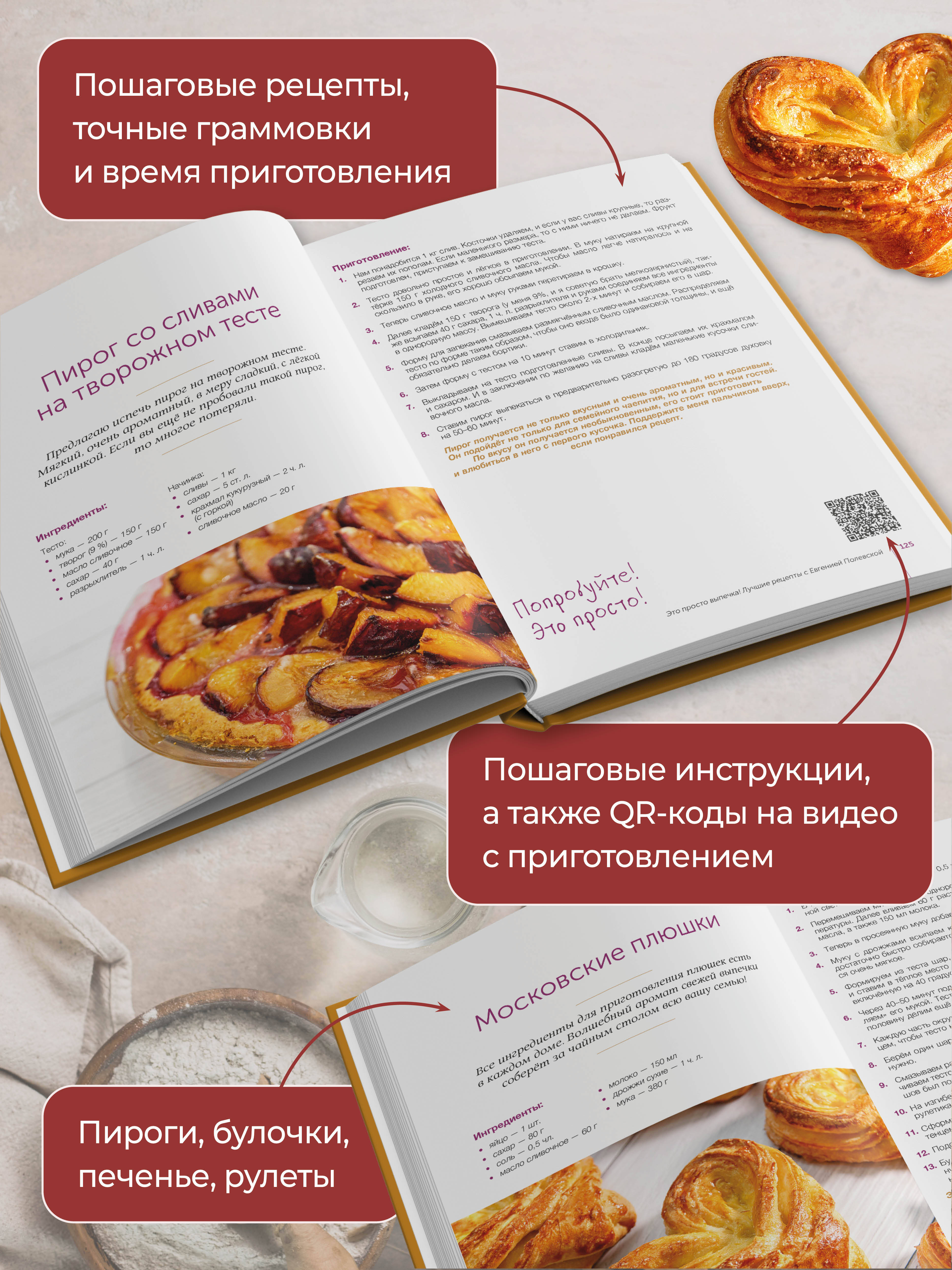 Евгения Полевская - автор популярного кулинарного канала «Это просто», по чьим рецептам готовят тысячи людей! Стиль приготовления ее блюд - легкость, скорость приготовления и красивая подача. В этой книге вы найдете лучшие рецепты выпечки с подробным процессом приготовления. К каждому рецепту предлагается qr-код на подробное видео на канале. Сдобные пироги, жареные пирожки и воздушные булочки, вкусные кексы и ароматное печенье соберут ваших родных и близких за одним столом! Все рецепты проверены на кухнях зрителей, поэтому и у вас все получится по любому рецепту!