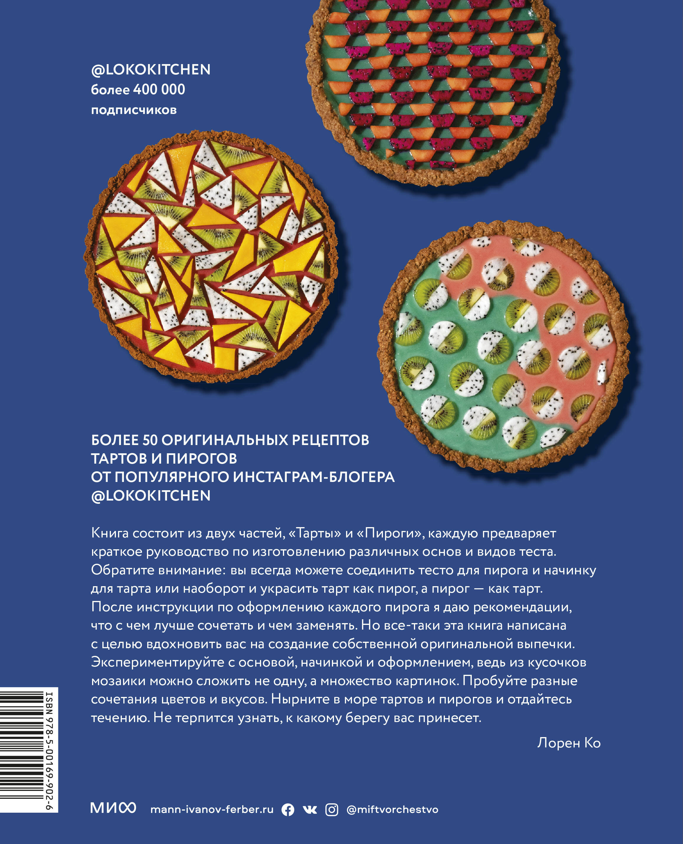 За несколько лет Лорен Ко заставила мир печь пироги, есть пироги и говорить о пирогах, а сама прошла путь от новичка до звезды интернета. Лорен придумывает и воплощает удивительные дизайны пирогов и тартов. Она предпочитает геометрический стиль, и в ее руках кусочки фруктов и полоски теста превращаются в великолепные принты и узоры. Элегантность оформления - и при этом неизменно чудесные вкусовые сочетания! И хотя на первый взгляд кажется, что подобный дизайн за гранью реальности, на самом деле с ним справится любой, у кого есть нож, линейка и немного терпения. В "Пирогометрии" Лорен не только раскрывает свои секреты, но и делится историями о каждом варианте оформления, рассказывает, что именно ее вдохновило. Она не скрывает, что самым красивым пирогам и тартам предшествовали впечатляющие "пирогострофы" и "тартаварии", пишет об этом с теплом и юмором. Лорен подробно рассказывает, как сделать цветное тесто без искусственных красителей, как выполнить изысканное плетение и создать замысловатый узор из вырезанных элементов. "Пирогометрия" содержит точные пошаговые инструкции и дополнена красочными фотографиями, настолько подробно иллюстрирующими процесс, что приготовить по ним пирог - от теста до топпинга - сможет каждый. Лорен продумала все настолько детально, что вы легко сможете составлять комбинации из предложенных видов теста, начинок и вариантов оформления, к тому же к каждому рецепту прилагается комментарий о том, какие ингредиенты и чем можно заменить. И даже если вы допустите пару ошибок, оформляя тарт или пирог, вы все равно сможете насладиться отличным вкусом! В "Пирогометрии" собраны рецепты и сладких, и несладких пирогов, каждый из которых представляет собой настоящий праздник вкуса. Только представьте: "О свёкле и черепице": Тарт с риккоттой и медом на тесте с пряными травами и свёклой. "Ягодная сокровищница": Сливочный крем с лавандой и ежевикой на песочном тесте без яиц с ягодами. "На гребне волны": Кофейный крем с кардамоном в сочетании с песочным тестом без яиц и грушей. "По ту сторону изгороди": Тыквенная начинка с тахини из черного кунжута на слоеном тесте с черным кунжутом. "Сссс-вобода действий": Начинка с мускатной тыквой, беконом, макаронами и сыром в сочетании с цельнозерновым слоеным тестом с сыром чеддер и шнитт-луком. "Благая весть": Начинка с ананасом-гриль и корицей в сочетании со слоеным тестом по базовому рецепту. "Пирогометрия" станет вашим проводником в мир, где простые блюда превращаются в произведения искусства. Захотите ли вы впечатлить друзей в праздники или же украсить семейную трапезу, в этой книге вы обязательно найдете то, что вам нужно. От автора: Я родилась в семье, где царило гурманство. Я росла среди ценителей вкусной еды, в равной степени способных готовить божественные блюда и наслаждаться покупными закусками. Я утопала в ароматах паэльи с морепродуктами и острых чипсов. Получала удовольствие от изысканного флана с карамелью и простого брауни из коробки. Я бы могла приготовить севиче с креветками даже во сне или испечь целый противень нежного печенья с шоколадными каплями. Даже торт на собственную свадьбу я сделала сама. Но пирог? Нет уж. Слишком страшно. Слишком долго. Честно говоря, я не помню ни одного пирога, который кто-либо из моей родни приготовил бы своими руками. Осенью 2016 многое изм