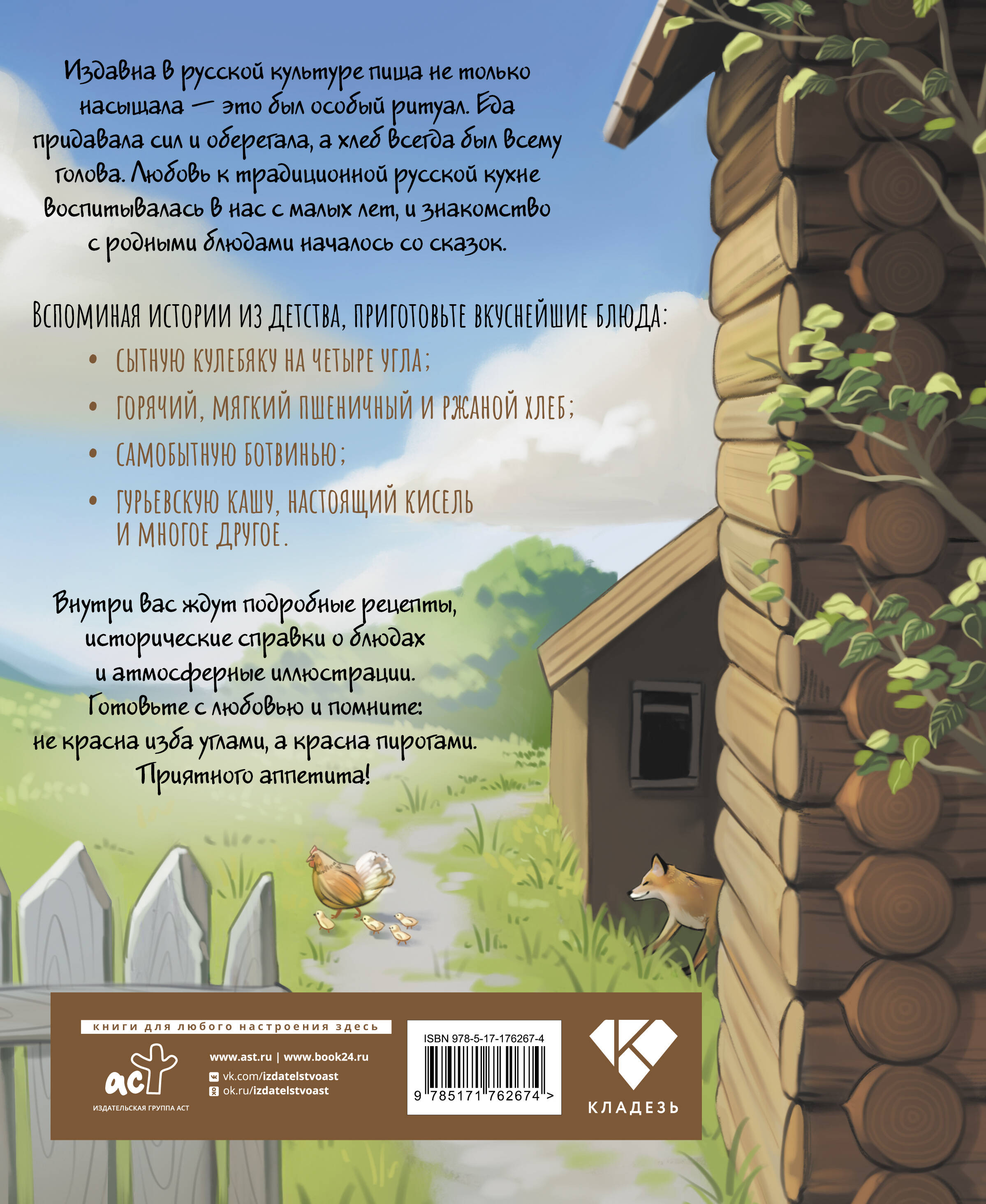 Издавна в русской культуре пища не только насыщала - это был особый ритуал. Еда придавала сил и оберегала, а хлеб всегда был всему голова. Любовь к традиционной русской кухне воспитывалась в нас с малых лет, и знакомство с родными блюдами началось со сказок. Вспоминая истории из детства, приготовьте вкуснейшие блюда: • сытную кулебяку на четыре угла; • горячий, мягкий пшеничный и ржаной хлеб; • самобытную ботвинью; • гурьевскую кашу, настоящий кисель и многое другое. Внутри вас ждут подробные рецепты, исторические справки о блюдах и атмосферные иллюстрации. Готовьте с любовью и помните: не красна изба углами, а красна пирогами. Приятного аппетита!| Издательство | Издательство "АСТ" |