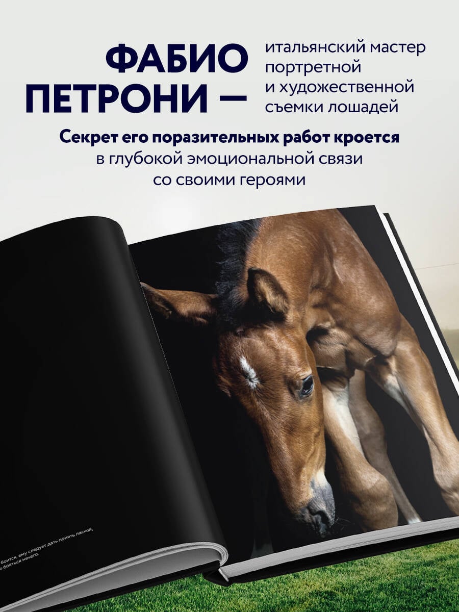 Идея создавать фотографии в особом стиле, который отличает эту книгу, родилась при созерцании картин Рембрандта: именно тогда у автора появилось желание с помощью фотокамеры воспроизвести образы, обладающие столь же сильным эмоциональным воздействием. Решение запечатлеть встревоженных лошадей и вывести их из привычного контекста, чтобы максимально подчеркнуть их внутреннее состояние, - непростая задача. Однако искусное использование света, основанное на многолетнем опыте автора, позволило ему создать уникальные изображения, эффектность и выразительность которых еще больше усиливаются большим форматом издания. Но главным, что дало Фабио Петрони возможность столь напрямую передать подлинную сущность этих великолепных четвероногих созданий, стала его глубокая эмоциональная близость к снимаемым животным - плод любви и знаний, накопленных за долгие годы общения с миром лошадей. И вот перед объективом проходят лошади: хитрые, застенчивые, агрессивные, гордые, ленивые, заботливые, любопытные и ласковые - целая карусель эмоций, которые фотографу удается донести с особой силой, чуткостью и точностью.