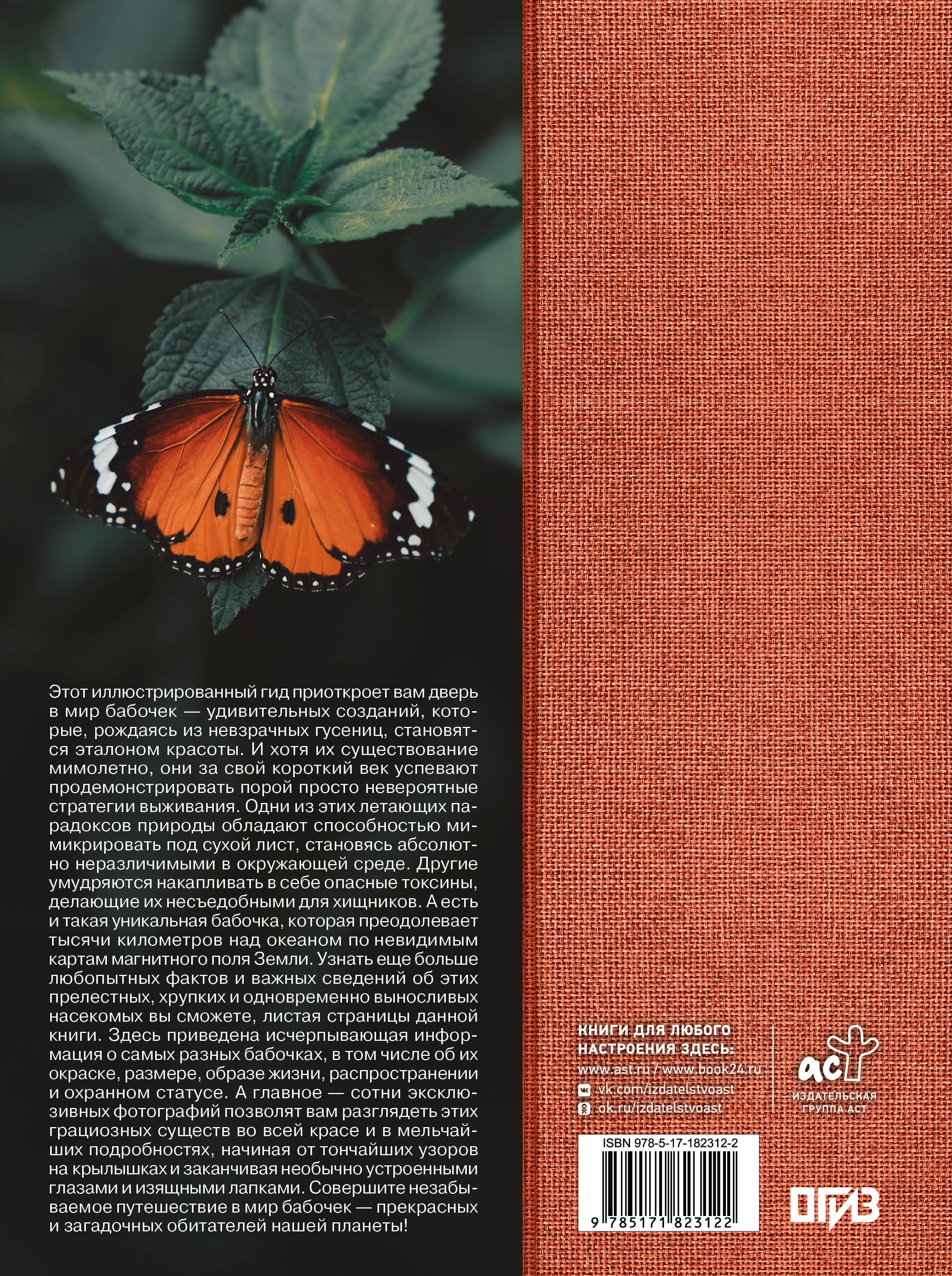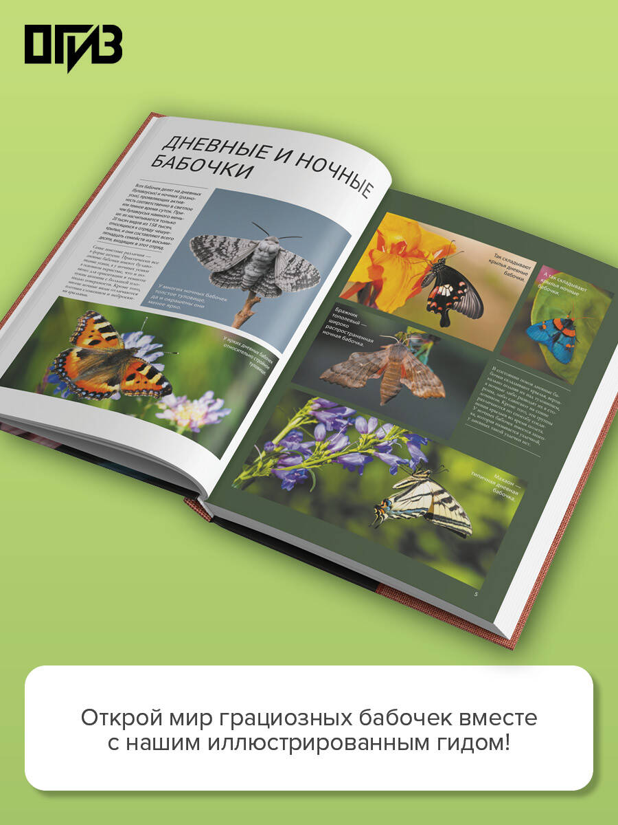 Этот иллюстрированный гид приоткроет вам дверь в мир бабочек - удивительных созданий, которые, рождаясь из невзрачных гусениц, становятся эталоном красоты. И хотя их существование мимолетно, они за свой короткий век успевают продемонстрировать порой просто невероятные стратегии выживания. Одни из этих летающих парадоксов природы обладают способностью мимикрировать под сухой лист, становясь абсолютно неразличимыми в окружающей среде. Другие умудряются накапливать в себе опасные токсины, делающие их несъедобными для хищников. А есть и такая уникальная бабочка, которая преодолевает тысячи километров над океаном по невидимым картам магнитного поля Земли. Узнать еще больше любопытных фактов и важных сведений об этих прелестных, хрупких и одновременно выносливых насекомых вы сможете, листая страницы данной книги. Здесь приведена исчерпывающая информация о самых разных бабочках, в том числе об их окраске, размере, образе жизни, распространении и охранном статусе. А главное - сотни эксклюзивных фотографий позволят вам разглядеть этих грациозных существ во всей красе и в мельчайших подробностях, начиная от тончайших узоров на крылышках и заканчивая необычно устроенными глазами и изящными лапками. Совершите незабываемое путешествие в мир бабочек - прекрасных и загадочных обитателей нашей планеты!
