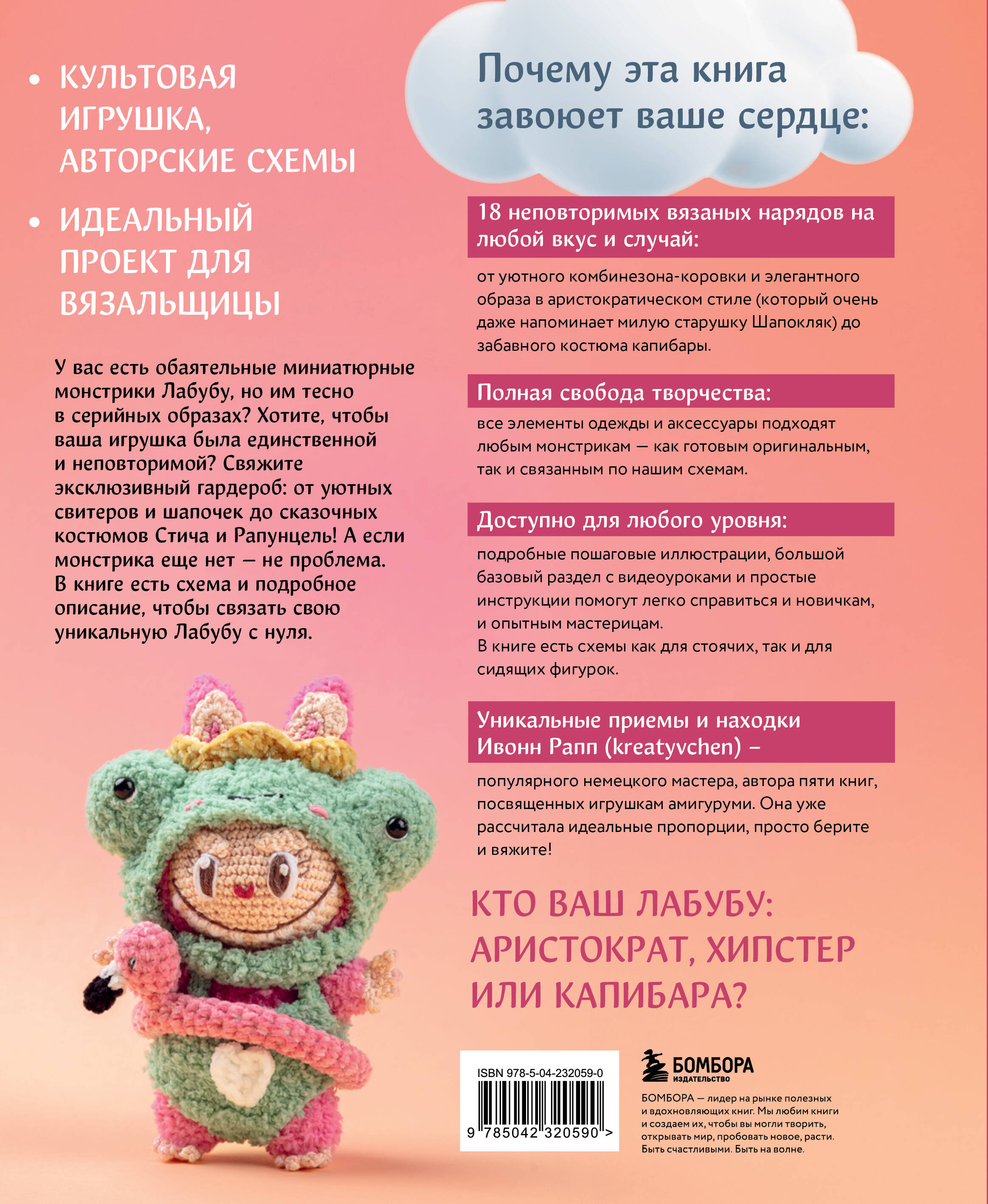 У вас есть обаятельные миниатюрные монстрики Лабубу, но им не хватает индивидуальности? Подарите им настоящее модное преображение с помощью крючка и этой удивительной книги! А если монстрика еще нет - не проблема. В книге есть схема и подробное описание для стоячего и сидячего варианта, чтобы связать свою уникальную Лабубу с нуля. Если следовать рекомендациям по пряже, то размер игрушки будет один в один с покупной игрушкой. Почему эта книга завоюет ваше сердце: • 18 неповторимых вязаных нарядов на любой вкус и случай: От уютного комбинезона-коровки и элегантного образа в аристократическом стиле (который очень даже напоминает милую старушку Шапокляк) до забавного костюма капибары. Каждый аутфит - это шанс проявить фантазию! • Полная свобода творчества: Все элементы одежды и аксессуары подходят любым монстрикам - как готовым оригинальным, так и связанным по нашим схемам. • Доступно для любого уровня: Подробные пошаговые иллюстрации, большой базовый раздел с видеоуроками и простые инструкции помогут легко справиться с моделью и новичкам, и опытным мастерицам. В книге есть схемы как для стоячих, так и для сидящих фигурок. • Книгу создала Ювонна Рапп (kreatyvchen), для которой вязание - настоящая страсть. Ее авторские куклы и зверушки всегда наполнены игривым характером и любовью к деталям. Свяжите себе и своим брелокам хорошее настроение! Подарите себе и своим маленьким спутникам новый, стильный образ на каждый день! Эта книга - идеальное решение для вас, если: • Вы вяжете крючком амигуруми и ищете конкретные схемы для одежды куклам и зверушкам. • У вас есть коллекция брелоков-монстриков (привет, Labubu!), и вы хотите одеть их по своему вкусу, а не искать редкие и дорогие готовые наряды. • Вам нужны понятные инструкции с фото и видео, чтобы сразу приступить к вязанию, даже если вы новичок.| Издательство | ООО "Издательство "Эксмо" |