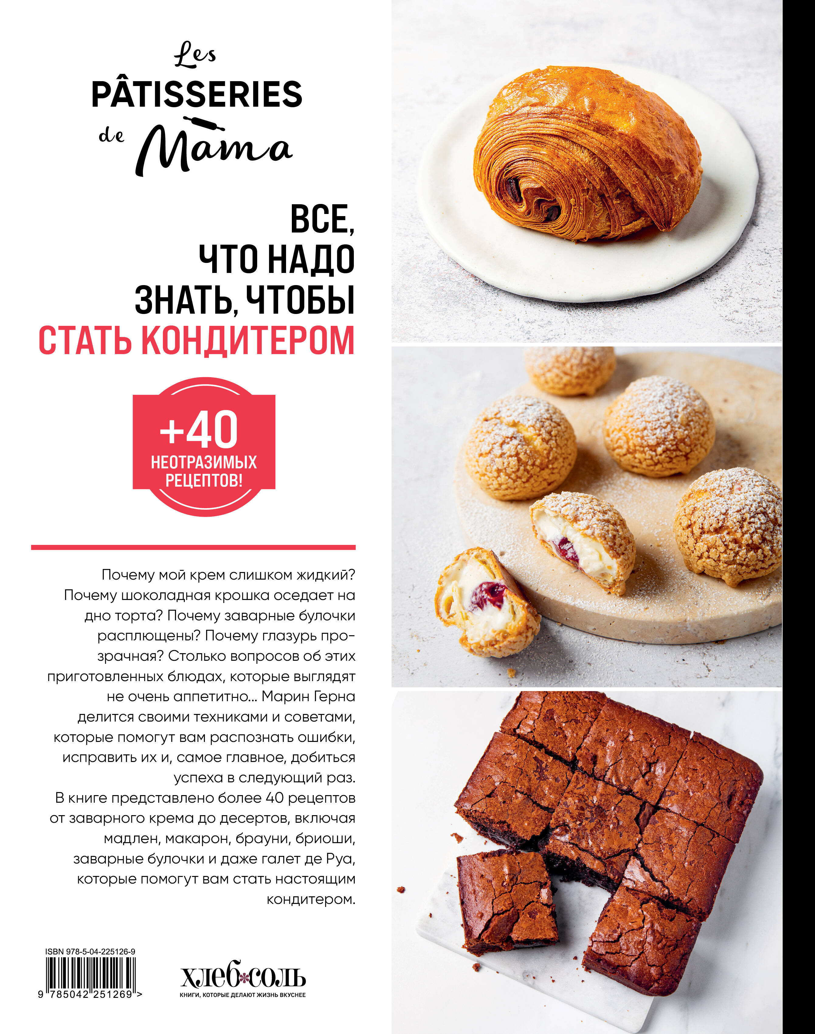 Почему мой крем слишком жидкий? Почему шоколадная крошка оседает на дно торта? Почему заварные булочки расплющены? Почему глазурь прозрачная? Столько вопросов об этих приготовленных блюдах, которые выглядят не очень аппетитно... Марин Герна делится своими техниками и советами, которые помогут вам распознать ошибки, исправить их и, самое главное, добиться успеха в следующий раз. В книге представлено более 40 рецептов, от заварного крема до десертов, включая мадлен, макарон, брауни, бриоши, заварные булочки и даже галет де Руа, которые помогут вам стать настоящим кондитером.| Издательство | ООО "Издательство "Эксмо" |