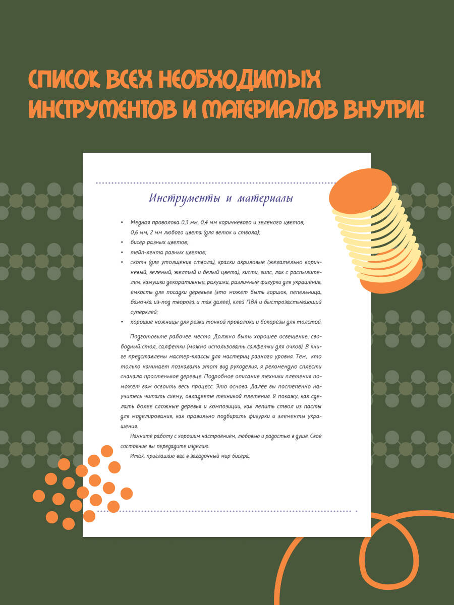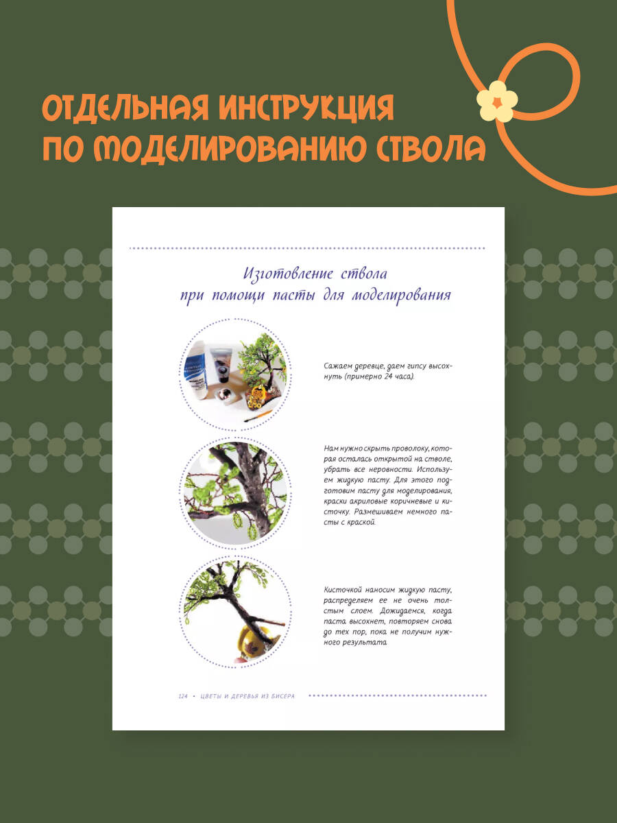 Елена Качалова занимается бисероплетением уже больше 10 лет, она сама составляет схемы плетения и композиции, а также обучает этому искусству всех желающих. Дерево - это символ мощной энергии, вечной любви, жизни, совершенства, силы и благополучия. В каждом доме должно быть маленькое деревце, напоминающее о том, что вы - часть природы. С этой книгой вы научитесь создавать произведения искусства! Достаточно только подготовить необходимые материалы и следовать пошаговым описаниям. Вместе с автором вы сможете сплести цветущий куст сирени, нежную сакуру, денежное дерево, осеннюю рябину и множество других цветов и деревьев. Плетение цветов и деревьев из бисера - это увлекательное путешествие в мир природы, фантазии и искусства. Приступайте к работе с хорошим настроением, любовью и радостью в душе!| Издательство | ИЗДАТЕЛЬСТВО "АСТ" |