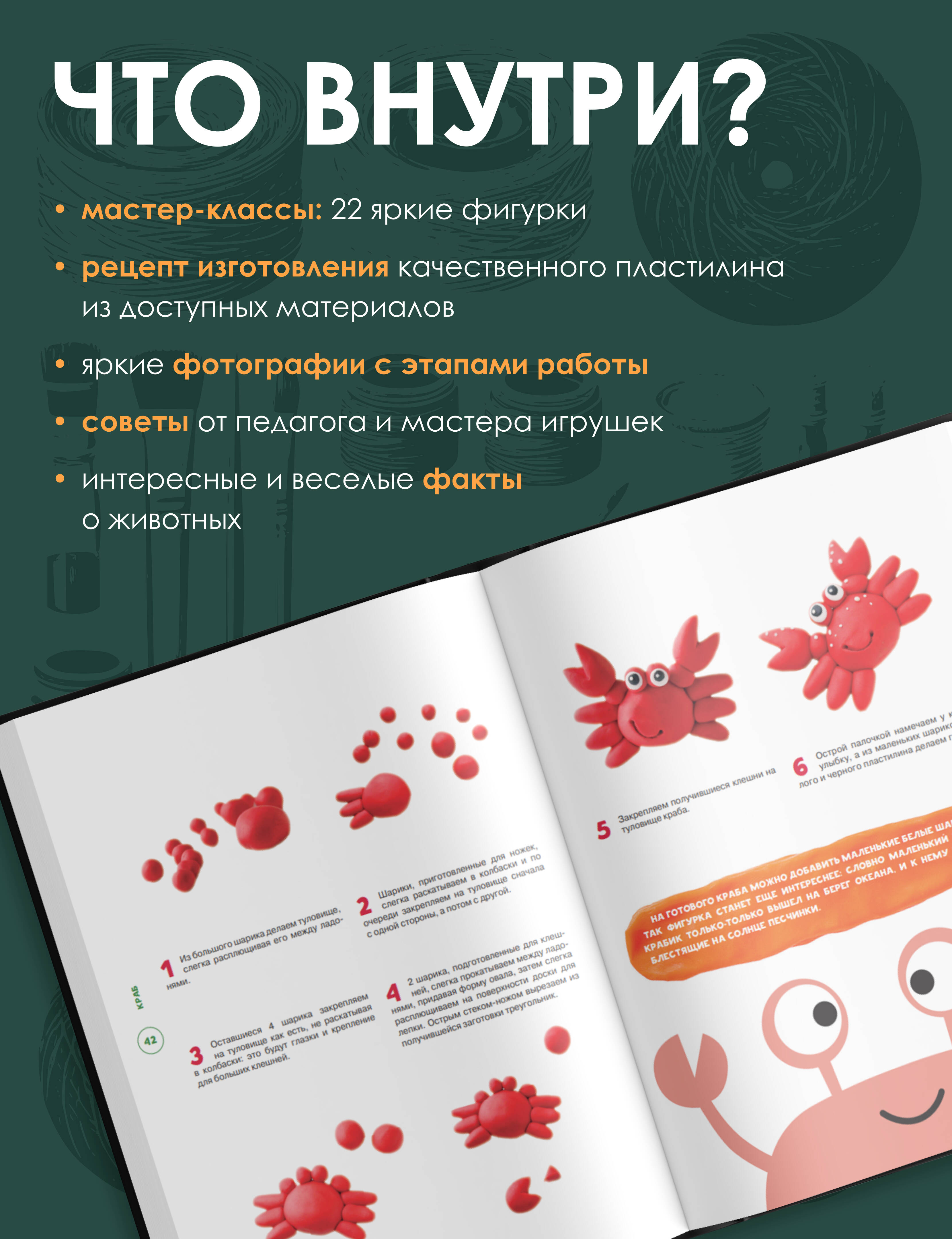Создайте всей семьей настоящий пластилиновый зоопарк! Ищете идеи для плодотворных творческих занятий с ребенком? Эта книга - ваше решение! В ней вы найдете пошаговые инструкции по созданию очаровательных зверюшек из пластилина. На страницах красочного руководства они как будто оживают и просятся к вам на руки! Рассматривать фотографии готовых изделий можно бесконечно. Вам непременно захочется повторить понравившегося персонажа, а советы от педагога и мастера игрушек Катерины Пискуновой легко помогут это сделать. Процесс лепки развивает мелкую моторику, воображение и познавательные способности ребенка, а помощь родителей привнесет в атмосферу творчества еще больше тепла и уюта.