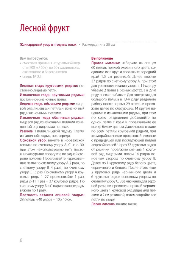 В книге предлагается несколько вариаций митенок. Сделайте из коротких длинные или украсьте парой пуговиц или стразами, - и вот ваша собственная дизайнерская модель готова.