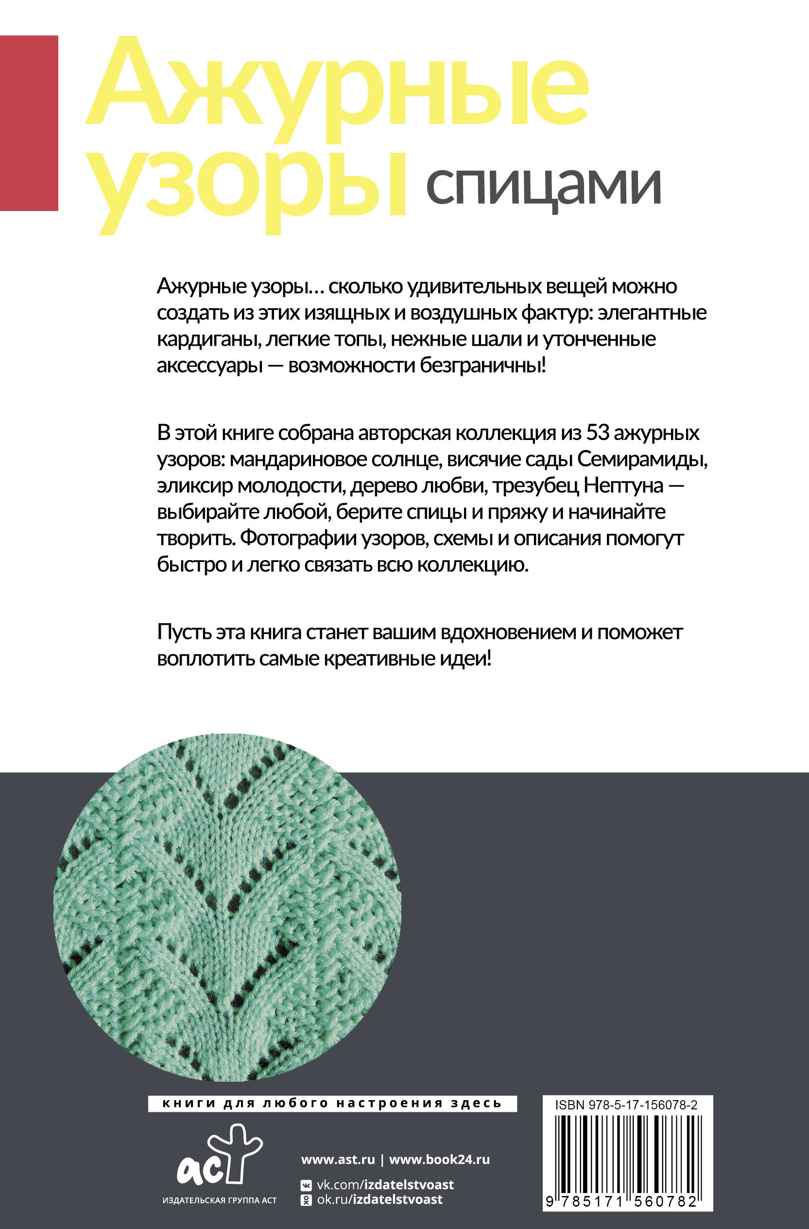 Галина Парахонько - мастер по вязанию узоров спицами, создатель своей авторской коллекции удивительных узоров. В этой книге собрано 53 ажурных узора: мандариновое солнце, висячие сады Семирамиды, эликсир молодости, дерево любви, трезубец нептуна - выбирайте любой, берите спицы и пряжу и начинайте творить. Фотографии узоров, схемы и описания помогут быстро и легко связать всю коллекцию. Пусть эта книга станет вашим вдохновением и поможет воплотить самые креативные идеи!| Издательство | Издательство "АСТ" |