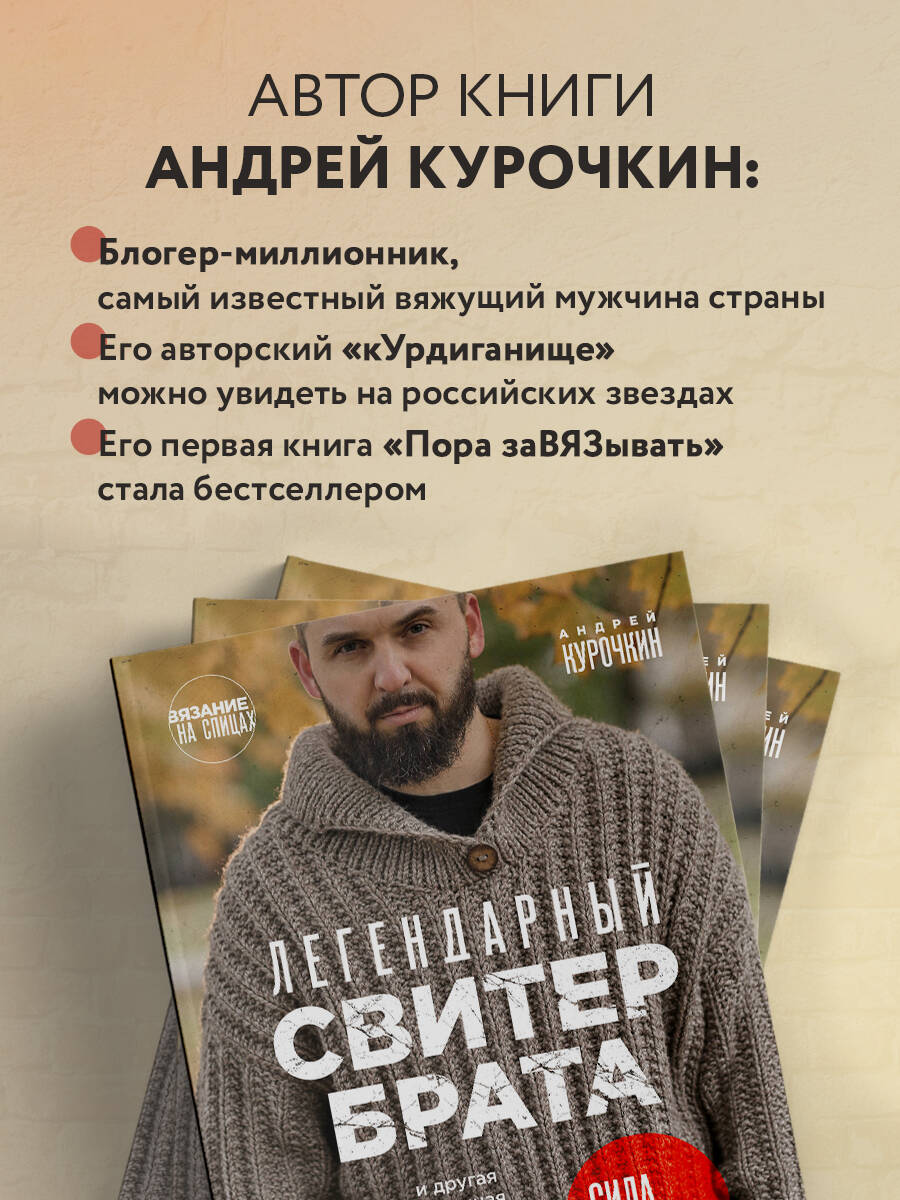Этот объемный свитер грубой вязки, «настоящая кольчуга богатыря XX века, выходящего на битву с драконом!», мгновенно отзовется в памяти каждого: фильм «Брат» режиссера Алексея Балабанова вышел на экраны в 1997 году и стал легендой, главный герой Данила Багров - настоящим символом поколения, а подбор одежды для персонажей - «энциклопедией моды 90-х». «Это не просто история о вязаном свитере, который стал символом героя своего времени, - это ее продолжение, рассказанное сквозь призму вязания серии простых и эффектных авторских изделий для мужчин, женщин и детей!» - Андрей Курочкин В книге представлены: • Подлинная история оригинального свитера «Брата». • Классический свитер «Брата» с воротником апаш на пуговице. • Вариант классического свитера с шалевым воротником. • Элегантная интерпретация легендарного свитера с новой вариацией рукавов и узором. • Уникальные модели одежды и аксессуаров в стиле культового фильма: кофта, шапка, воротничок, снуд, шарф, удлиненный кардиган. • И, наконец - суперИДЕЯ - знаменитый «Курдиганище» в стиле «Брата»! Мастерски разработанные пошаговые инструкции, вязать по которым сможет даже…. мужчина, полная информация по материалам, инструментам, основам вязания на спицах, роскошные иллюстрации и, конечно, увлеченность и харизма автора этой книги. Об авторе: Андрей Курочкин - блогер-миллионник, один из первых знаменитых вяжущих мужчин в России. Его знаменитый брутальный «КУРДИГАНИЩЕ» можно увидеть на самых известных персонах нашей страны. По профессии - инженер, а по жизни - отец семейства и просто человек, который умеет зажигать, вдохновлять и ломать стереотипы!| Издательство | ООО "Издательство "Эксмо" |
