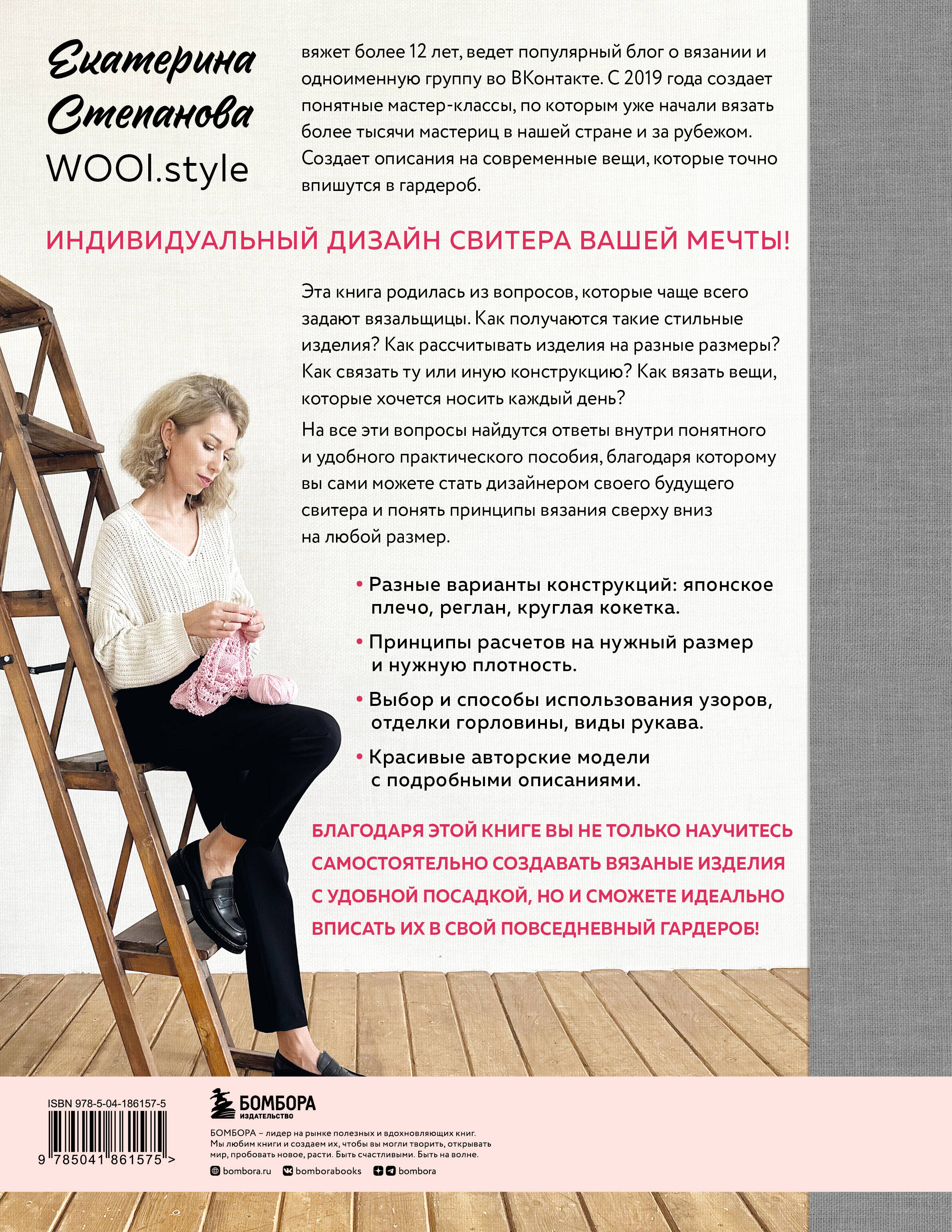 Книга, которая нужна каждому, кто хочет освоить вязание и старается следовать за современными тенденциями вязаной моды! О том, как сконструировать и связать свитер или джемпер вашей мечты, который идеально сядет на вашу фигуру, который вы будете носить каждый день и который как родной впишется в ваш гардероб, расскажет замечательный мастер и блогер с огромным количеством учеников по всему миру Екатерина Степанова. Только трендовые конструкции плечевых изделий: японское плечо, круглая кокетка, реглан во всех возможных вариантах! Способы отделки, принципы расчетов на любой размер, секреты выбора того или иного фасона, исходя из особенностей фигуры! Книга написана настолько интересно и просто, инструкции настолько понятны и прекрасно иллюстрированы, что справиться с вязанием сможет даже впервые взявший в руки спицы! Простой и стильный вариант вязания сверху вниз модных, красивых, прекрасно сидящих изделий! Об авторе: Екатерина Степанова / WOOl.style - вяжет более 12 лет, ведет популярный блог о вязании и одноименную группу во ВКонтакте, где собраны советы и лайфхаки для начинающих и не только. С 2019 года создает понятные мастер-классы со множеством видеоподсказок, чтобы вязать было легко и удобно. За эти годы по ее мастер-классам начали вязать более тысячи мастериц в нашей стране и за рубежом. Создает описания на современные вещи, которые точно впишутся в гардероб. Уникальный дизайн свитера вашей мечты!| Издательство | ООО "Издательство "Эксмо" |