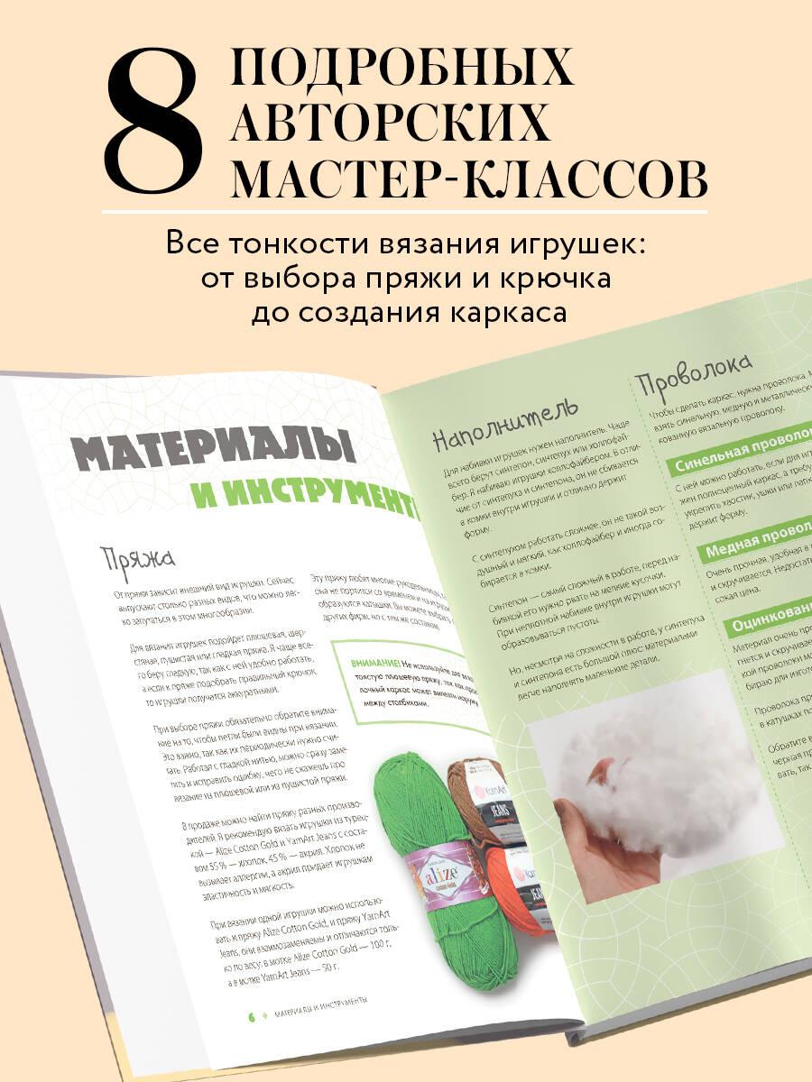 Очаровательный зеленый инопланетянин, который приветливо машет лапкой с обложки - это не просто вязаная игрушка! С ним и с его «товарищами», которым посвящена эта книга, можно придумать сотни веселых игр, поставить спектакль или даже снять мультик. Ведь эти игрушки умеют двигаться, принимать любые позы, держать в лапах предметы, сидеть или стоять и даже бегать. Секрет в каркасе, спрятанном внутри каждой игрушки. Уникальное пособие популярного блогера с огромной аудиторией и замечательного мастера Марии Устюшкиной посвятит вас во все тонкости вязания каркасных игрушек-амигуруми. От выбора пряжи и крючка до создания каркаса, от крепления глазок до оформления усов. А какие чудесные игрушки вы свяжете по подробным авторским мастер-классам! Ваши дети будут в восторге от новых друзей, а процесс работы доставит вам истинную радость!| Издательство | ООО "Издательство "Эксмо" |