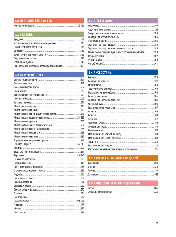В данном справочнике вас ждет 15 разделов, каждый из которых посвящен отдельному аспекту. Оборудование и материалы, обзор пряжи и ее виды, основные приемы, вязание на прямых и круговых спицах, многоцветные, ажурные узоры и узоры с косами, моделирование и конструирование, уход за вязаными изделиями, а также подробные разделы, посвященные моделированию и вязанию пуловеров, шалей, шапочек, варежек, перчаток и носочков - вас ждут ответы на все вопросы и множество полезной информации. Все описания сопровождаются пошаговыми иллюстрациями и подробными схемами. Издание рассчитано на широкий круг читателей, интересующихся рукоделием, и станет настольной книгой каждой любительницы вязания спицами.