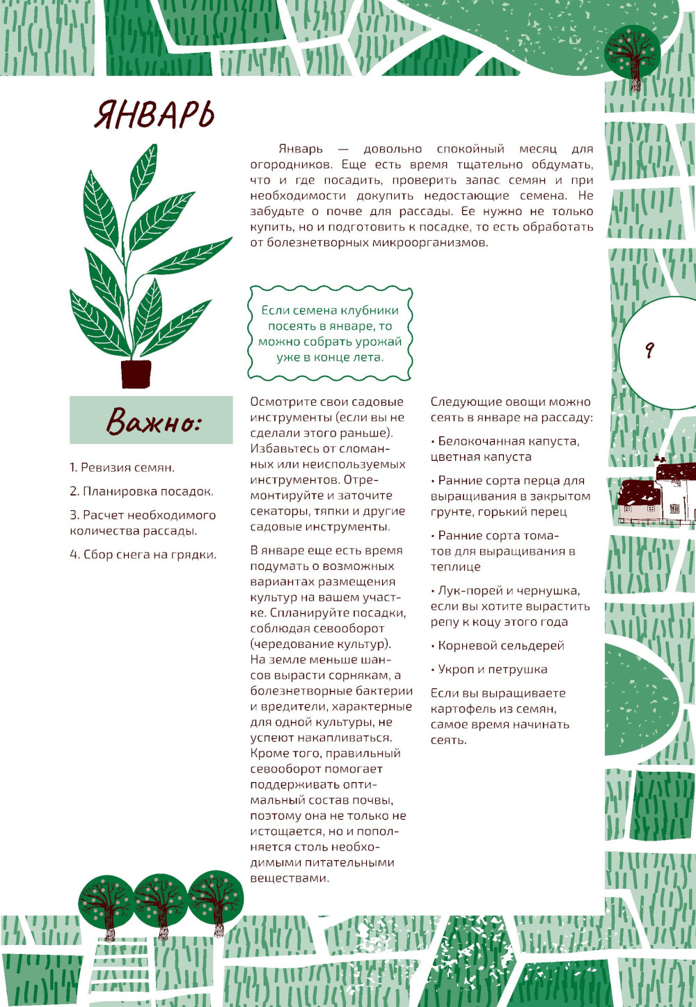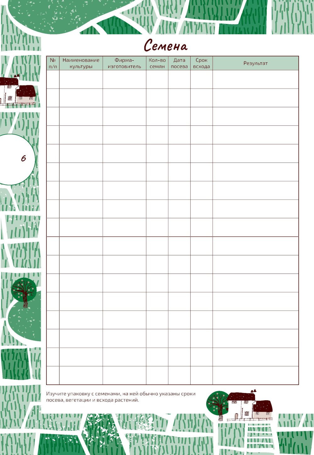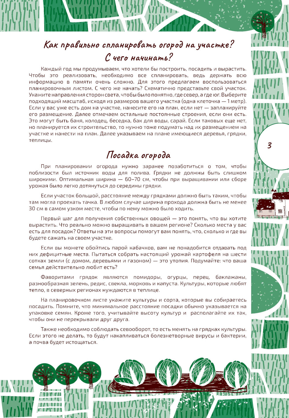 Дневник-помощник создан для планирования ваших работ в огороде. Удобная форма издания даст возможность правильно организовать посадки, контролировать и систематизировать уход за огородом. Помимо общего плана участка вы сможете создать детальные схемы посадок овощных культур с учетом совместимости и севооборота. Имея перед глазами общие рекомендации мероприятий в каждом месяце по разным направлениям ухода - подкормкам, обрезкам, борьбе с вредителями и профилактике заболеваний, - легко будет составить собственный календарь со списком дел на каждый день. Составитель А.А. Волошановская.