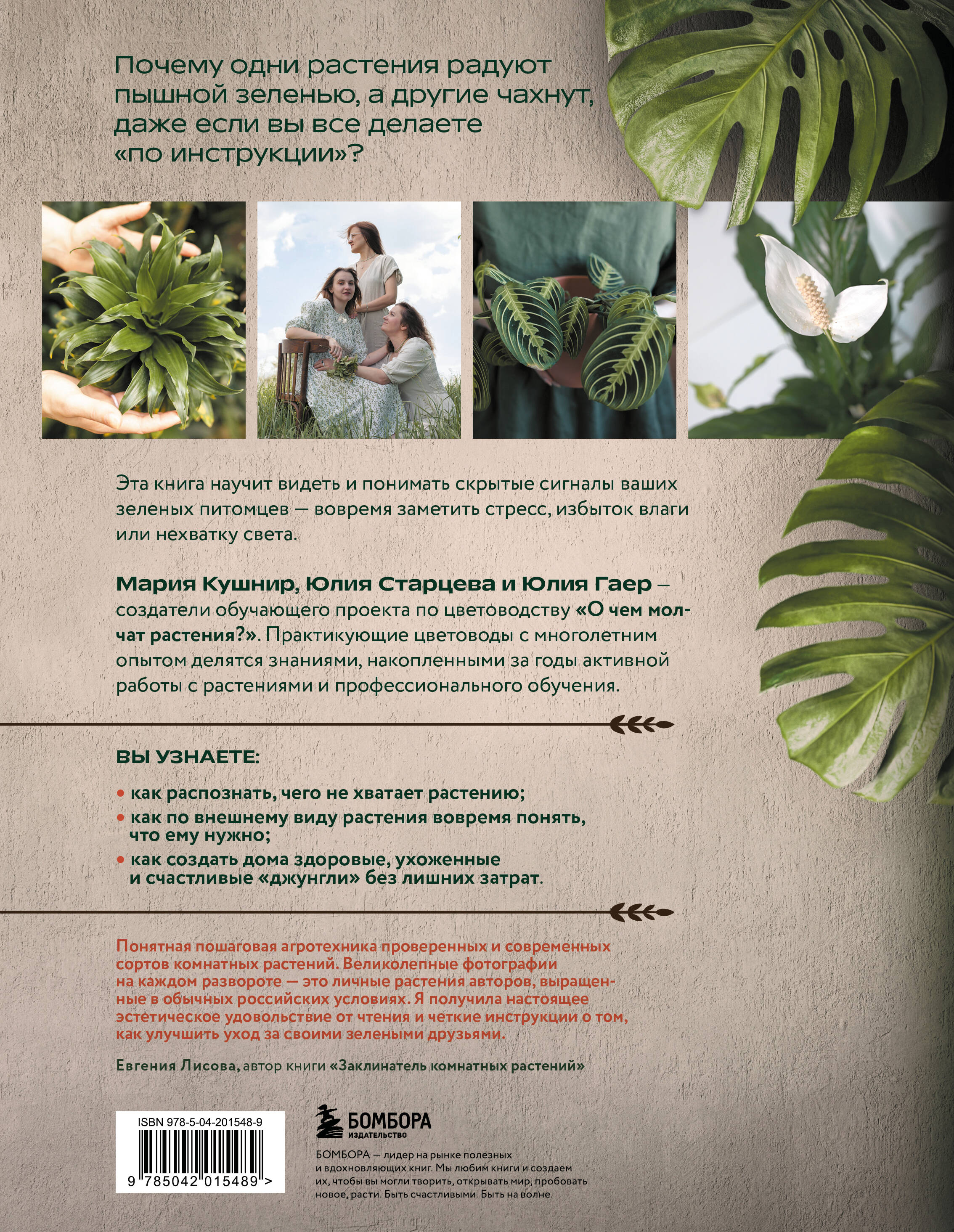 Мечтаете о пышных комнатных джунглях, но растения капризничают? Эта книга станет вашим главным помощником в мире комнатного цветоводства! Авторы - Мария Кушнир, Юлия Старцева и Юлия Гаер, создатели популярного обучающего проекта «О чем молчат растения?», делятся реальным опытом выращивания растений в обычных российских квартирах. Понятная пошаговая агротехника для проверенных и современных сортов, великолепные фотографии на каждом развороте, практические инструкции по уходу и секреты «языка растений» - все, что нужно для создания домашнего зеленого оазиса. Вы научитесь понимать, что говорит растение своим внешним видом, как вовремя распознать его потребности и избежать типичных ошибок в уходе. Книга подойдет как начинающим, так и опытным цветоводам, которые хотят систематизировать свои знания и вырастить здоровые, красивые растения. «Я получила настоящее эстетическое удовольствие от чтения и четкие инструкции о том, как улучшить уход за своими зелеными друзьями». - Евгения Лисова, автор книги «Заклинатель комнатных растений»