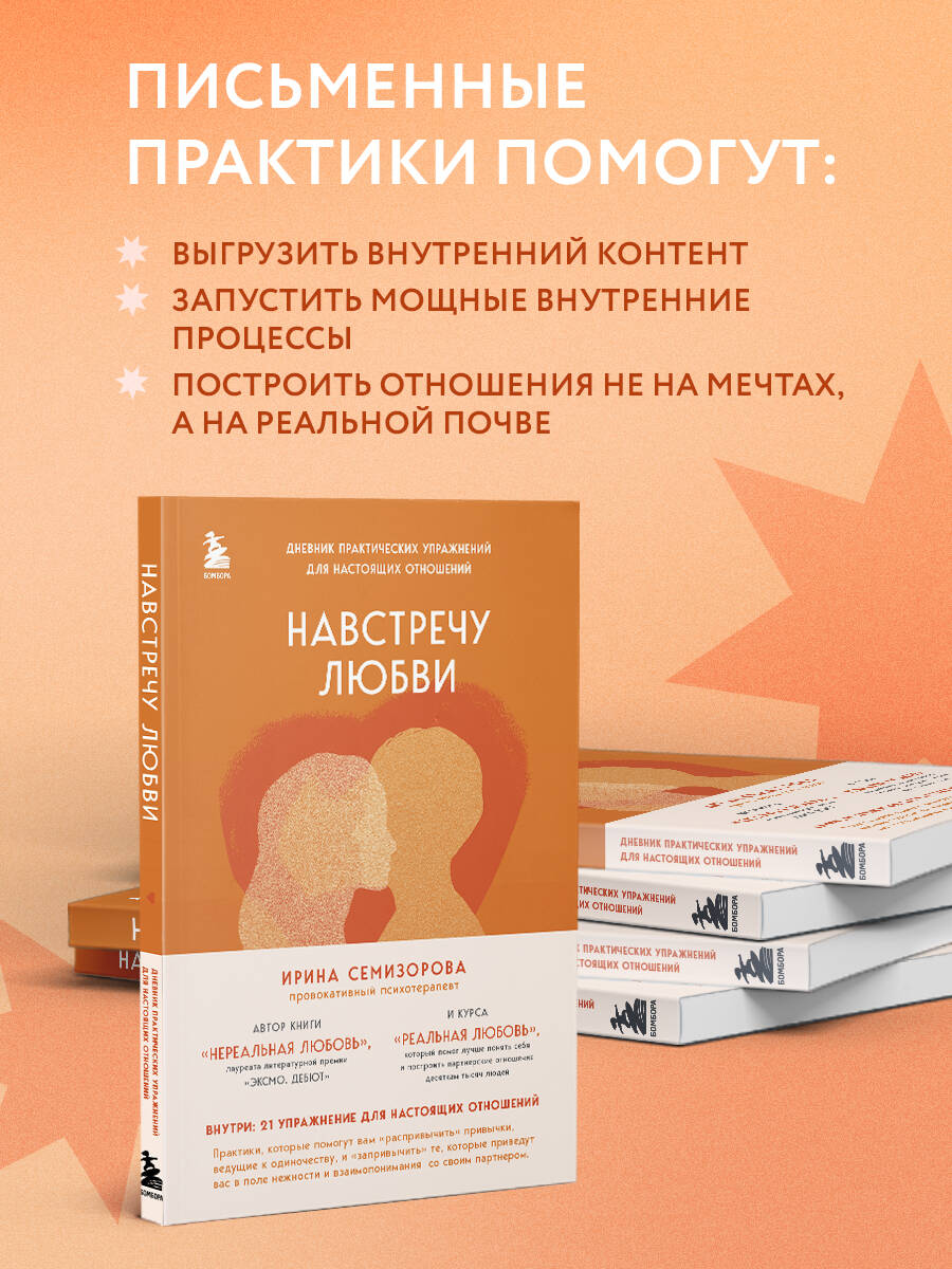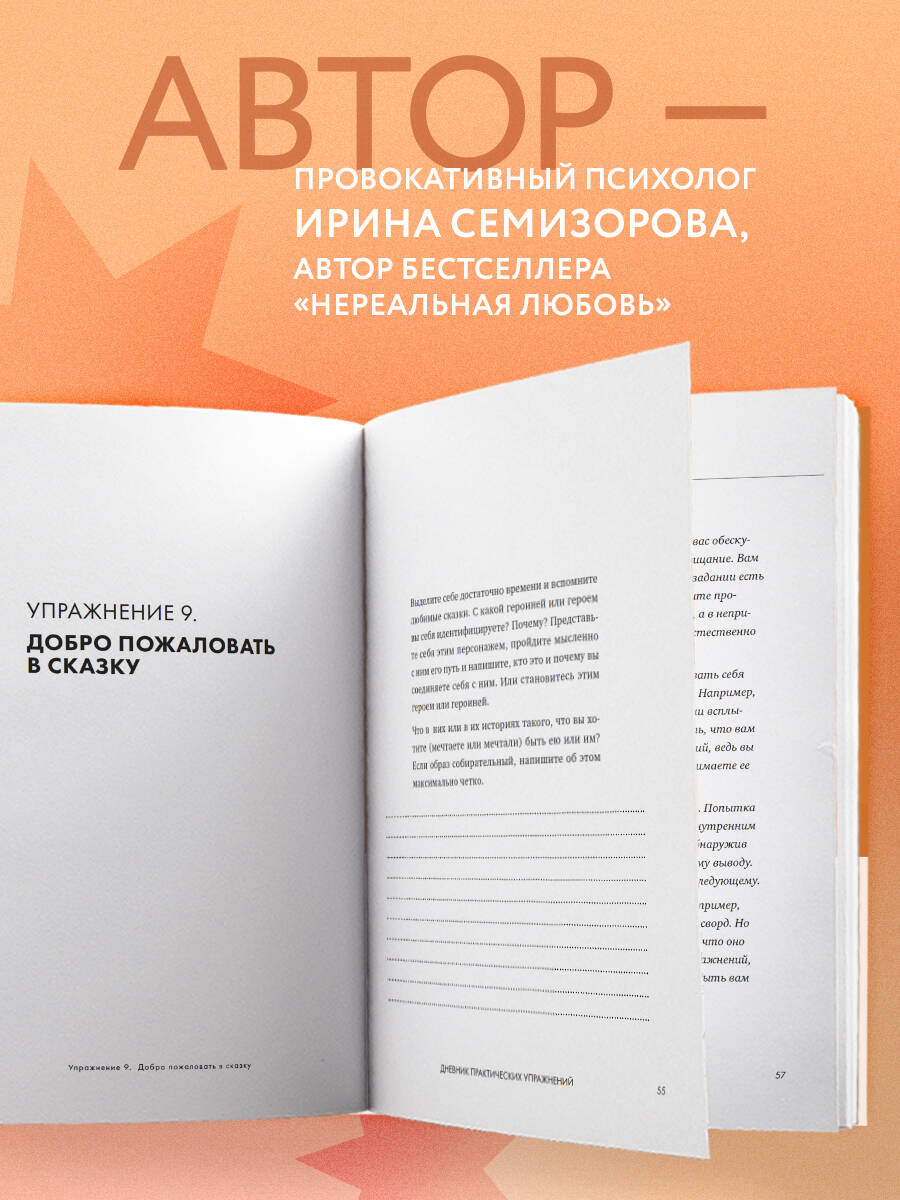 Автор бестселлера «Нереальная любовь» провокативный психолог Ирина Семизорова предлагает дневник, который наведет в вашей личной жизни полный и безоговорочный порядок. 21 упражнение, которое вы найдете внутри, помогут вам построить отношения, основанные не на лайках в соцсетях и не на пролистывании соцстраниц, не на мечтах или грезах, а на реальной почве. «Наш дневник для всех, кто хочет начать действовать, кто хочет оказаться в отношениях, и даже для тех, кто пока не знает, нужно ему это или нет. Наша психика - любящая и помогающая. Она непременно запомнит все упражнения и оставит их в сердце и голове, даже если вы уверены, что все благополучно позабыли сразу же после прочтения. Давайте делать: делать упражнения, делать отношения, делать жизнь». - Ирина Семизорова «Этот воркбук способен изменить жизнь. В нем - 21 упражнение от психолога, которые запустят мощные внутренние процессы. Пожалуй, это самый полезный дневник, что у вас когда-либо был: выписывая ответы на его страницах, вы не только узнаете себя, но и сможете построить здоровые и счастливые отношения». - Алеся Яцкевич, Редактор рубрики «Стиль жизни» WDay.ru
