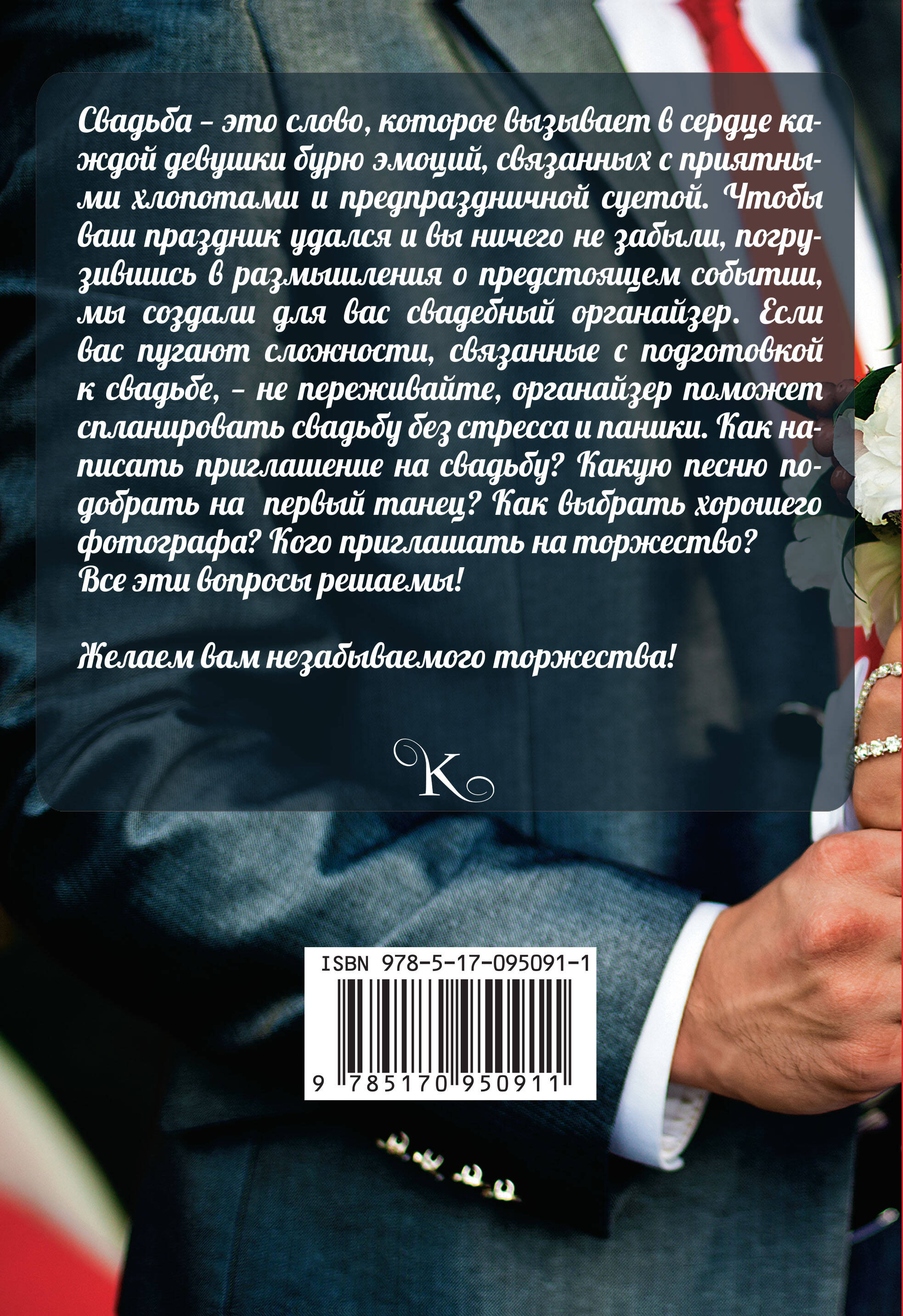 Красивая свадьба - мечта каждой девушки, которая должна воплотиться в жизнь! Если вы держите эту книгу в руках, искренне поздравляем, совсем скоро вам предстоит пережить самые прекрасные мгновения вашей жизни! Но, чтобы ничего не упустить, не забыть о мелочах, которые так важны при подготовке к свадьбе, необходимо подготовиться к этому событию своевременно. С чего начать планирование дня свадьбы, как подобрать кольца, костюм и платье, выбрать стиль свадьбы и определиться с количеством гостей - все эти и многие другие вопросы крутятся в голове будущих молодоженов. Торжество пролетит незаметно, но оставит в вашей памяти воспоминания на всю жизнь, поэтому попытайтесь получить удовольствие от каждого дня подготовки к этому событию!| Издательство | Издательство "АСТ" |