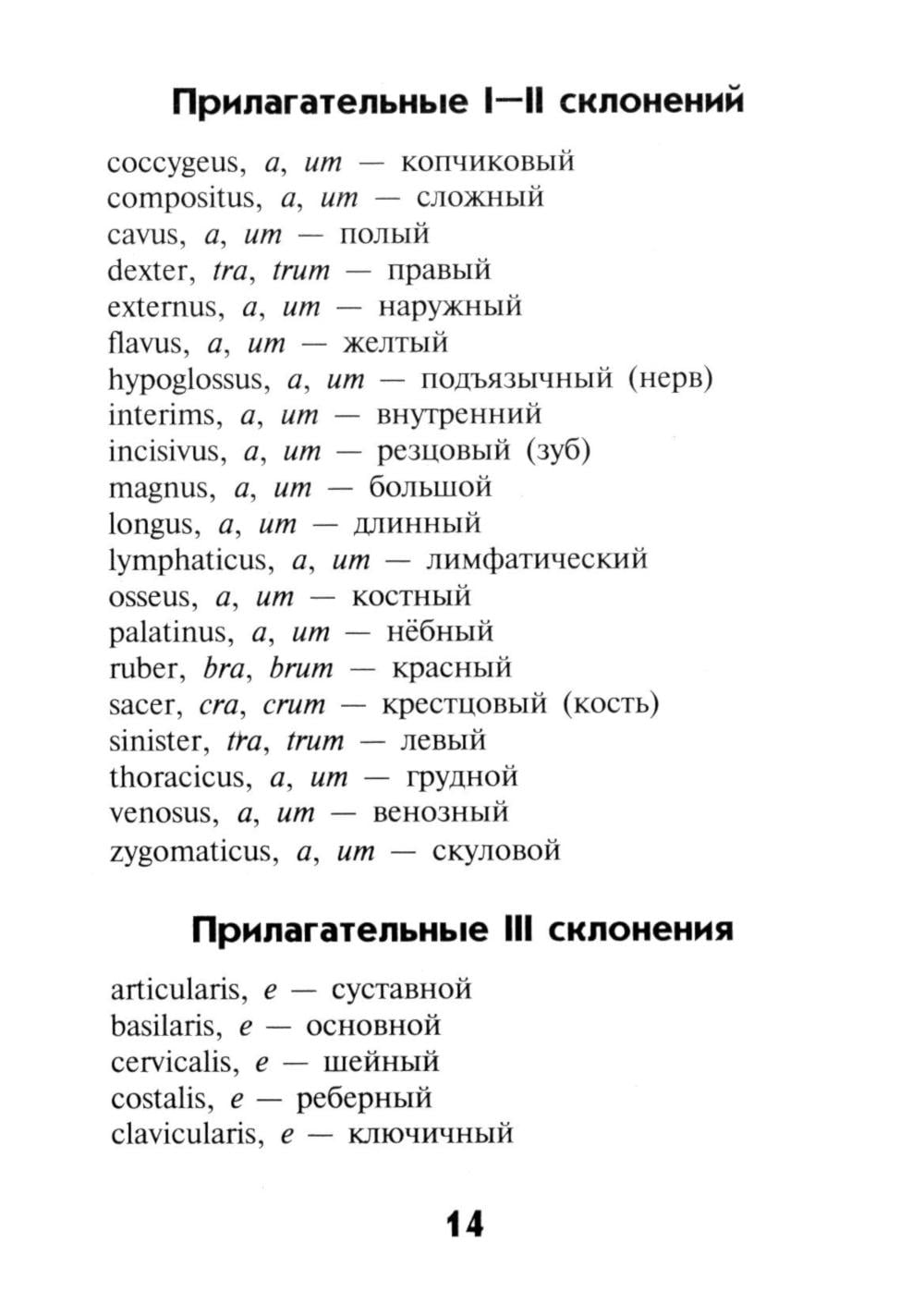 Этот словарь предназначен для студентов медицинских колледжей и лицеев, а также преподавателей анатомии, латинского языка и клинических дисциплин. Содержит 3200 слов и словосочетаний, необходимых для изучения анатомии и клинических дисциплин.