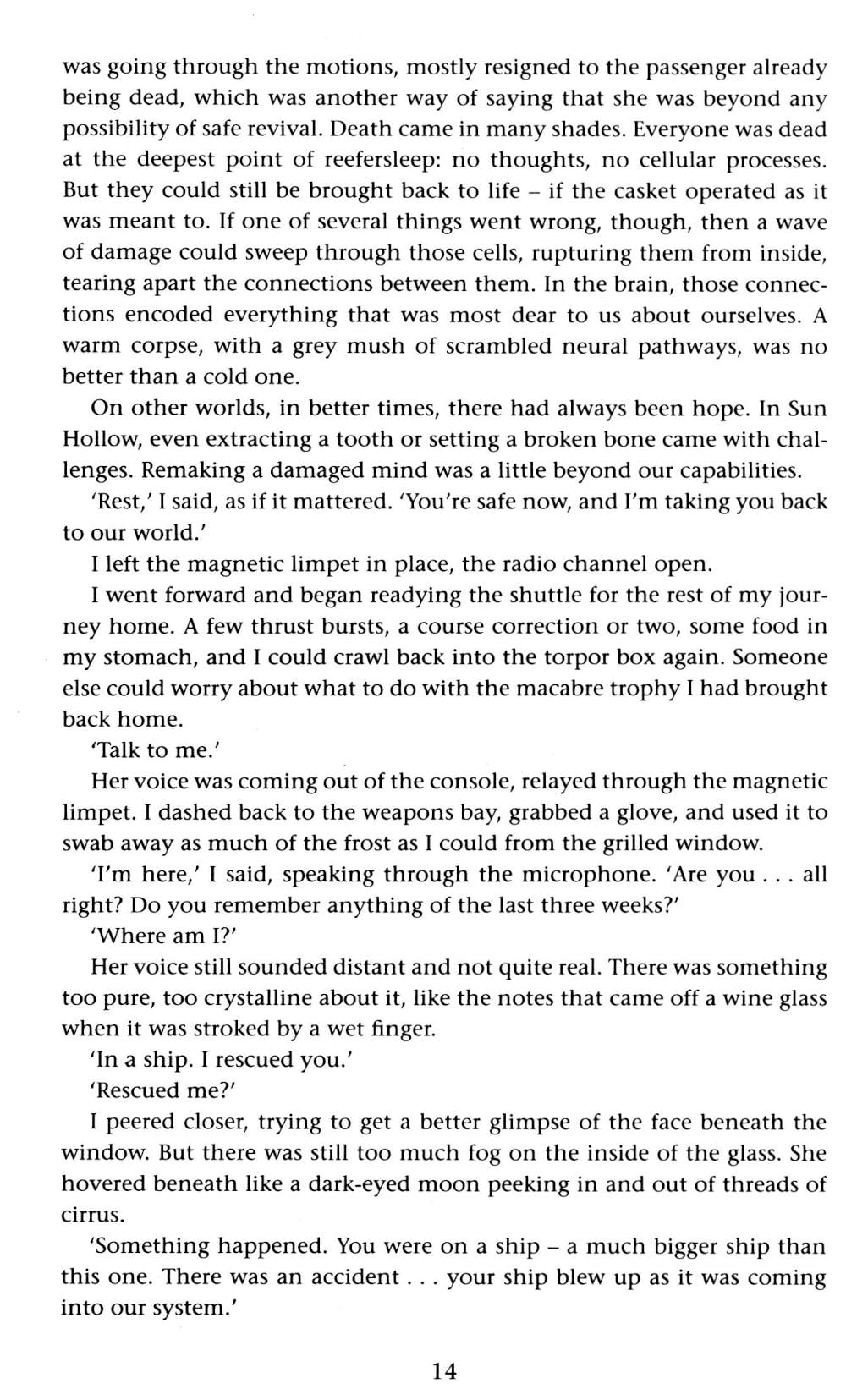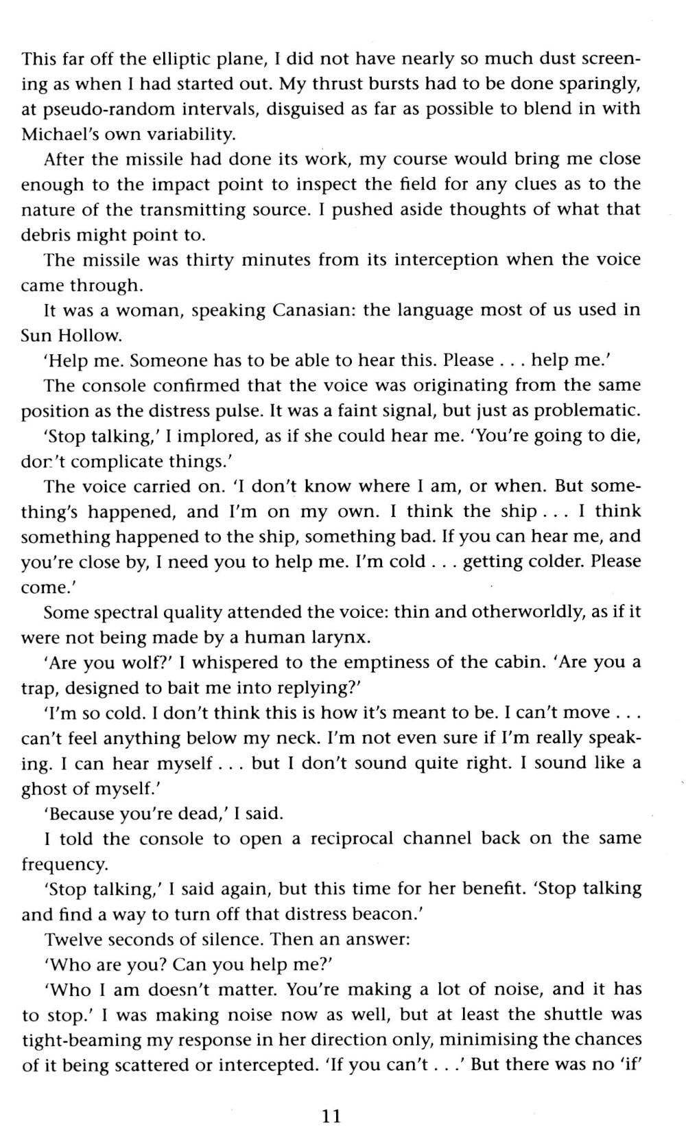 For thirty years a tiny band of humans has been sheltering in the caverns of an airless, crater-pocked world called Michaelmas. Beyond their solar system lie the ruins of human interstellar civilization, stalked by a ruthless, infinitely patient cybernetic entity determined to root out the last few bands of survivors. One man has guided the people of Michaelmas through the hardest of times, and given them hope against the wolves: Miguel de Ruyter. When a lone human ship blunders into their system, and threatens to lead the wolves to Michaelmas, de Ruyter embarks on a desperate, near-suicide mission to prevent catastrophe. But an encounter with a refugee from the ship-the enigmatic woman who calls herself only Glass-leads to de Ruyter's world being turned upside down.| Издательство | Gollancz |