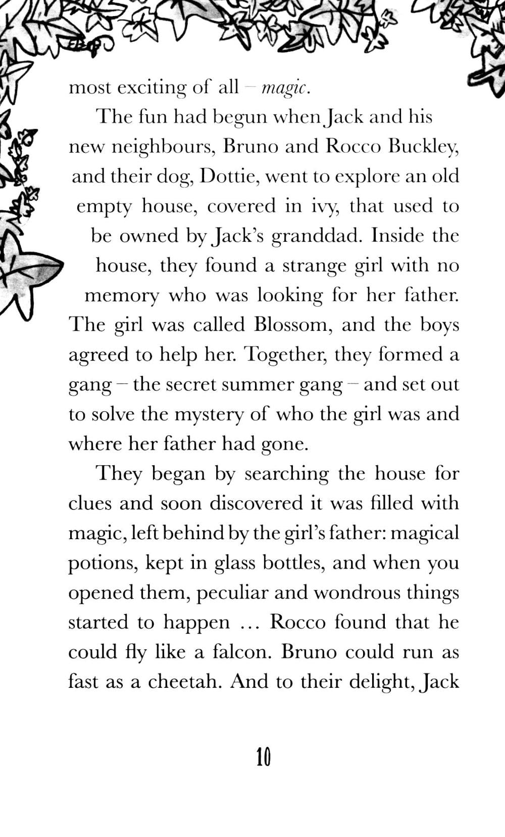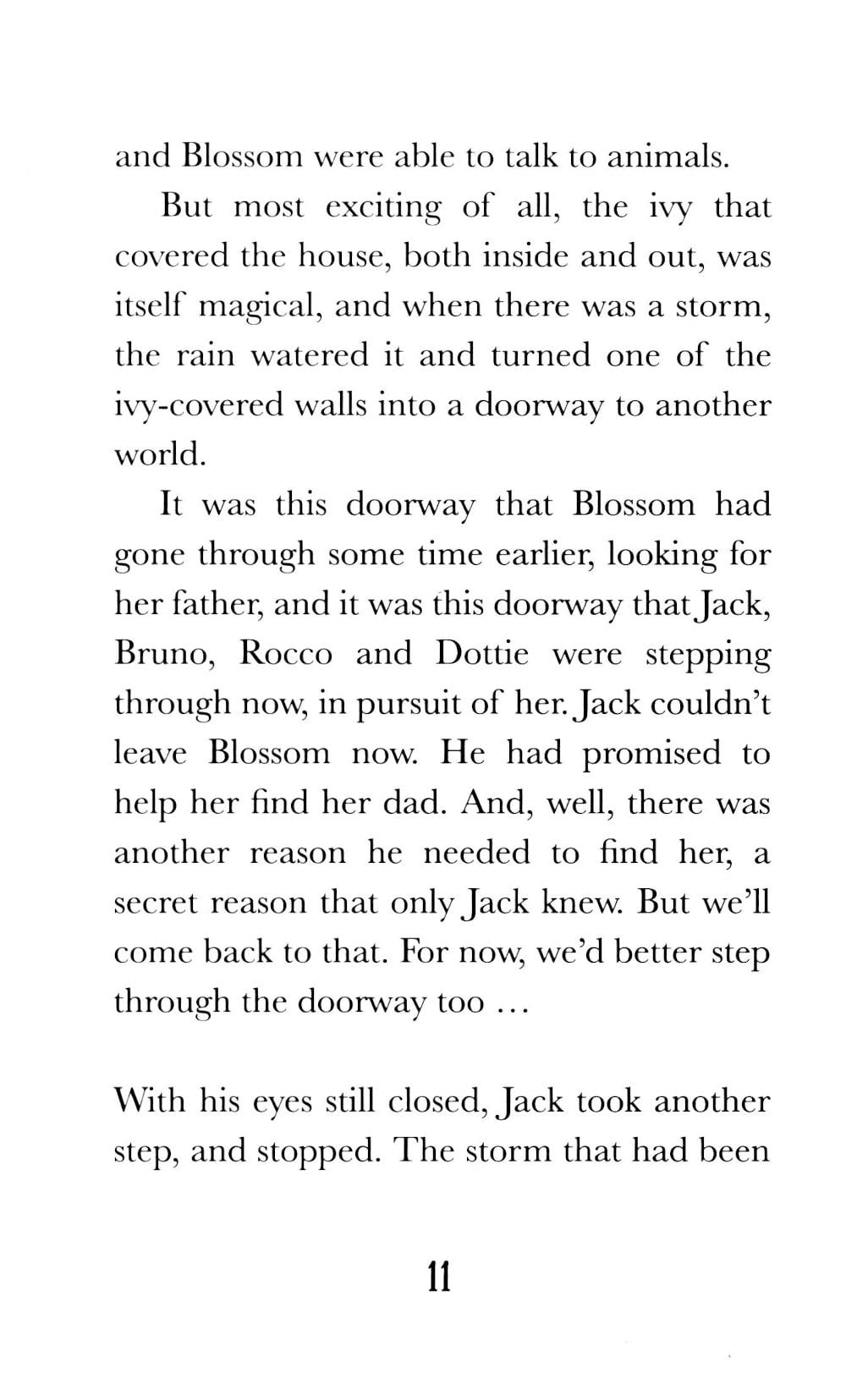 Everything changed the day Jack and his neighbours Bruno and Rocco went to explore the old empty house. There they discovered a strange girl called Blossom, who introduced them to a world of magic - talking to animals, flying like birds, and even... a doorway to another world, hidden within the ivy-covered walls of the old house. Now the gang have gone through the doorway, looking for Blossom's missing dad, the man who made the magic. But finding him will be just the start of the adventure, as Blossom's dad has a mission for the gang, and they're going to need all the magical powers they can get.