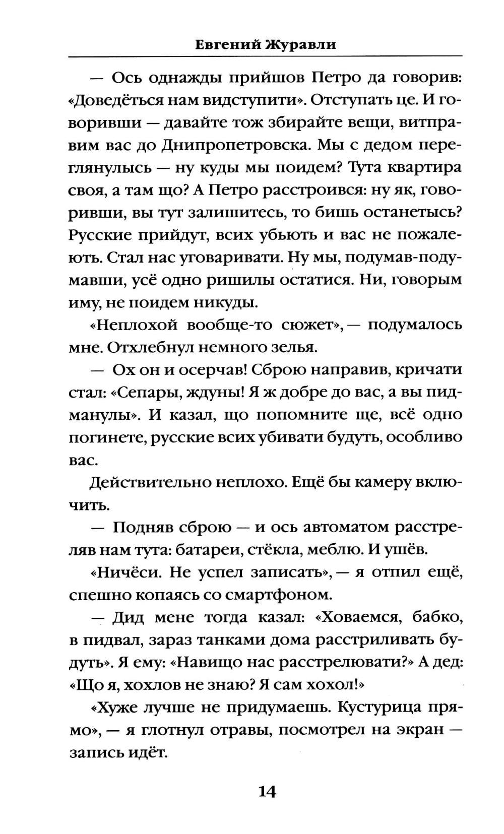 Главный герой сборника рассказов Евгения Журавли - война. Она открывает новое измерение в привычной жизни, и люди становятся другими. Смерть входит в жизнь, как нечто естественное и почти неизбежное, поэтому каждое мгновение бытия на войне приобретает свойство увеличительного стекла, сквозь которое автор рассматривает своих героев. Окружающий мир, жизнь, люди становятся другими. Книга Евгения Журавли ценна не только описанием этой новой реальности, но и (сквозь повествование) описанием опыта существования в ней. Это своего рода «учебник», содержащий в себе «краткий очерк» жизни внутри СВО. Второй обобщённый герой сборника - народ. СВО не стала «делом чести» для современной российской элиты. Она стала этим (в меру собственного понимания) делом для представителей средних и нижних социальных слоёв общества, для тех, кто прежде считался бессловесным материалом для проводимых экономических и прочих реформ. Именно они, простые работяги из российской глубинки, взявшие в руки автоматы, сменившие «ватники» (либеральный термин, обозначающий патриота из народа) на камуфляж и бронежилеты, выносят на своих плечах основную тяжесть СВО. Они - герои, сражающиеся за Родину, жертвующие собственной жизнью. Юрий Козлов - прозаик, публицист, главный редактор журнала «Роман-газета » и «Детская Роман-газета»| Издательство | Яуза-каталог |