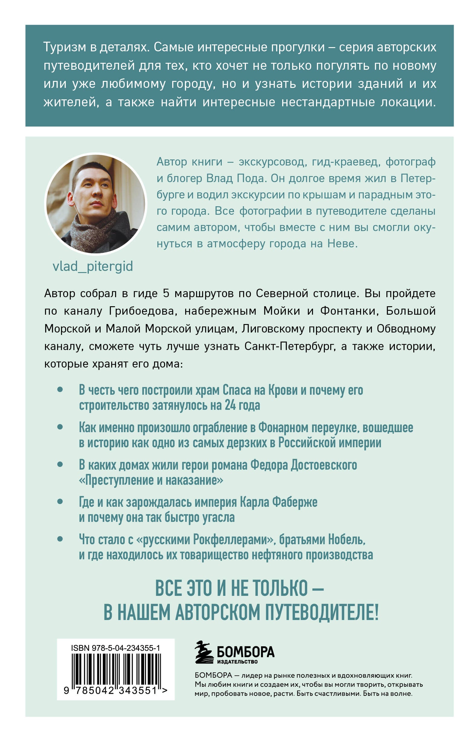 Уже 5-е издание авторского путеводителя серии «Туризм в деталях» позволит вам открыть для себя Петербург с новой стороны, погрузиться в историю его домов и дворцов, расположившихся на набережных и главных улицах дореволюционного города. Автор Владислав Пода - экскурсовод, гид-краевед, фотограф и блогер. Он долгое время жил в Петербурге и водил экскурсии по крышам и парадным этого города. Владислав собрал 5 маршрутов, в рамках которых вы сможете погрузиться в историю и атмосферу Петербурга, узнать множество интересных фактов и заглянуть в прошлое культурной столицы. Вы пройдете по каналу Грибоедова, набережным Мойки и Фонтанки, Большой Морской и Малой Морской улицам, Лиговскому проспекту и Обводному каналу. Изучая маршруты, вы сможете узнать: • В честь чего построили храм Спас-на-Крови и почему его строительство затянулось на 24 года. • Как именно произошло ограбление в Фонарном переулке, вошедшее в историю как одно из самых дерзких в Российской империи. • В каких домах жили герои романа Федора Достоевского «Преступление и наказание». • Где и как зарождалась империя Карла Фаберже и почему она так быстро угасла. • Что стало с «русскими Рокфеллерами» - братьями Нобель, и где находилось их товарищество нефтяного производства. Все это и не только - в нашем новом авторском путеводителе! Новое издание, исправленное и дополненное!