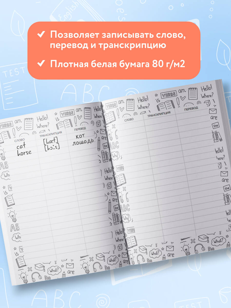 Большой словарный запас - ключ к общению на иностранном языке. Стильная и удобная тетрадь предназначена для записи любых иностранных слов, блок содержит три столбика: для слов на иностранном, их транскрипций и перевода. Качественная белая бумага, стильное внутреннее и внешнее оформление, удобная структура блока, - всё создано для приятного и эффективного использования! Подходит для занятий в школе, а также самостоятельного обучения. Для школьников и взрослых!