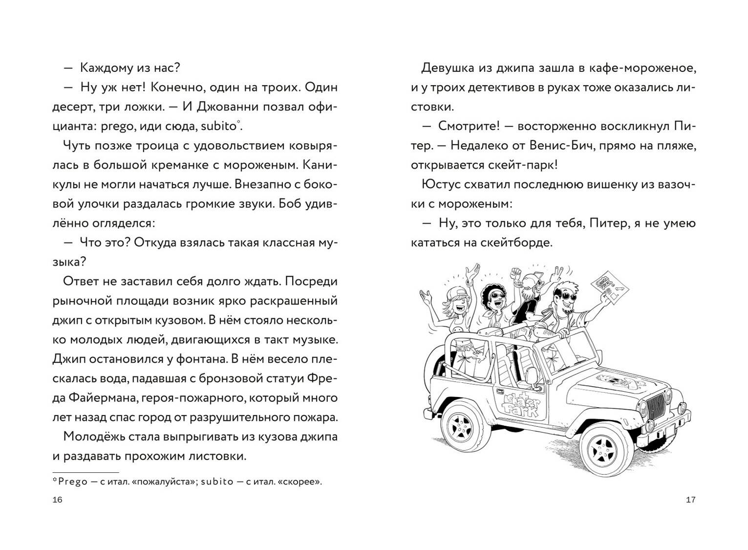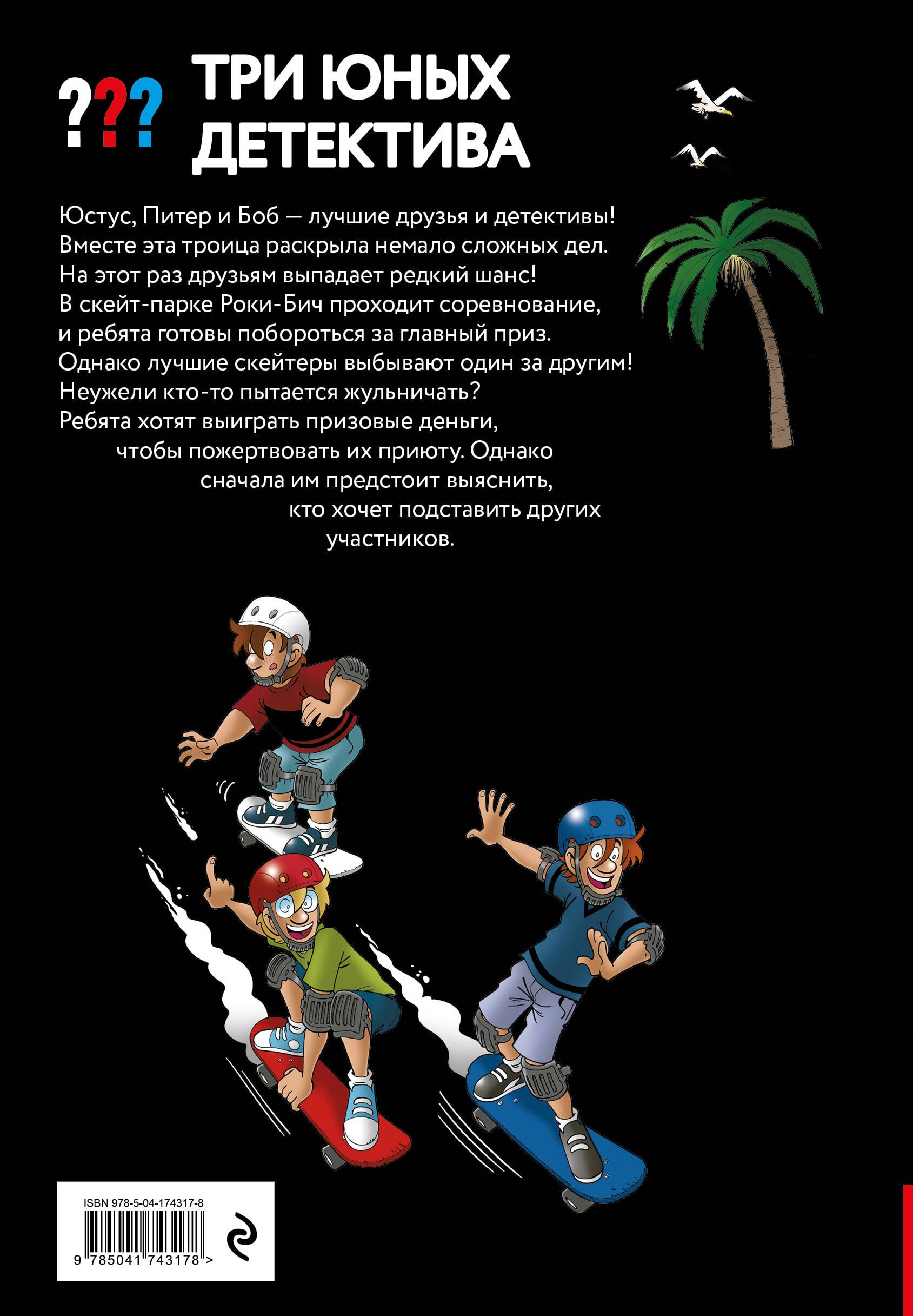 Увлекательная история о трех друзьях-детективах и их невероятных приключениях! Юстус, Питер и Боб - лучшие друзья и детективы! Вместе эта троица раскрыла немало сложных дел. На этот раз друзьям выпадает редкий шанс! В скейт-парке Роки-Бич проходит соревнование, и ребята готовы побороться за главный приз. Однако лучшие скейтеры выбывают один за другим! Неужели кто-то пытается жульничать? Ребята попытаются выиграть призовые деньги, чтобы пожертвовать их приюту. Однако сначала им предстоит выяснить, кто хочет подставить других участников.