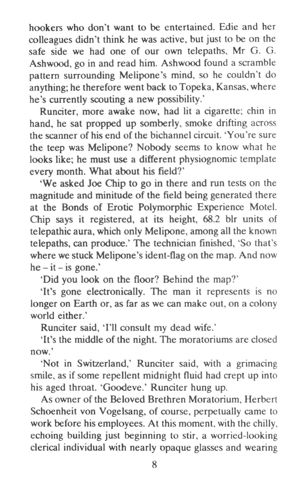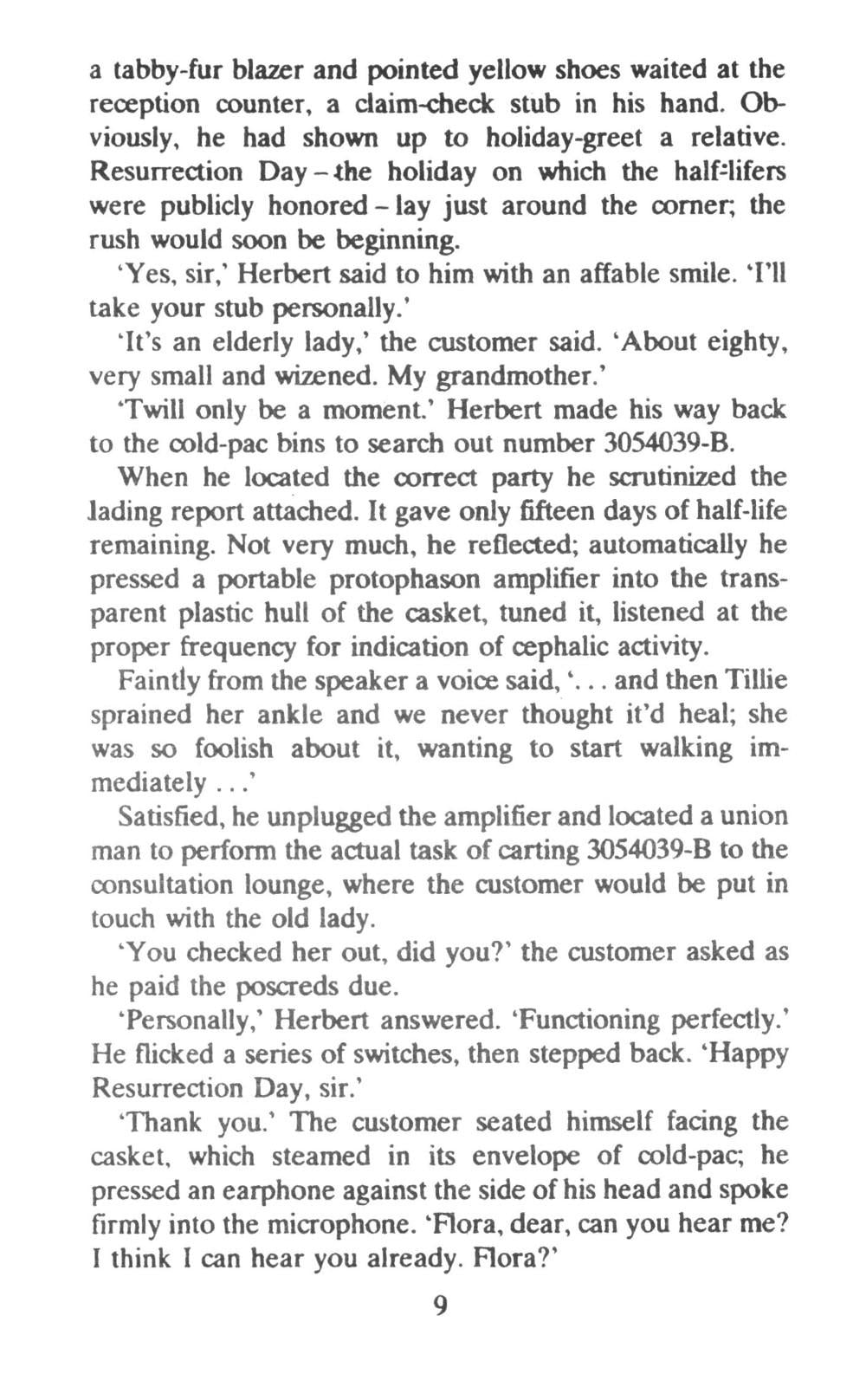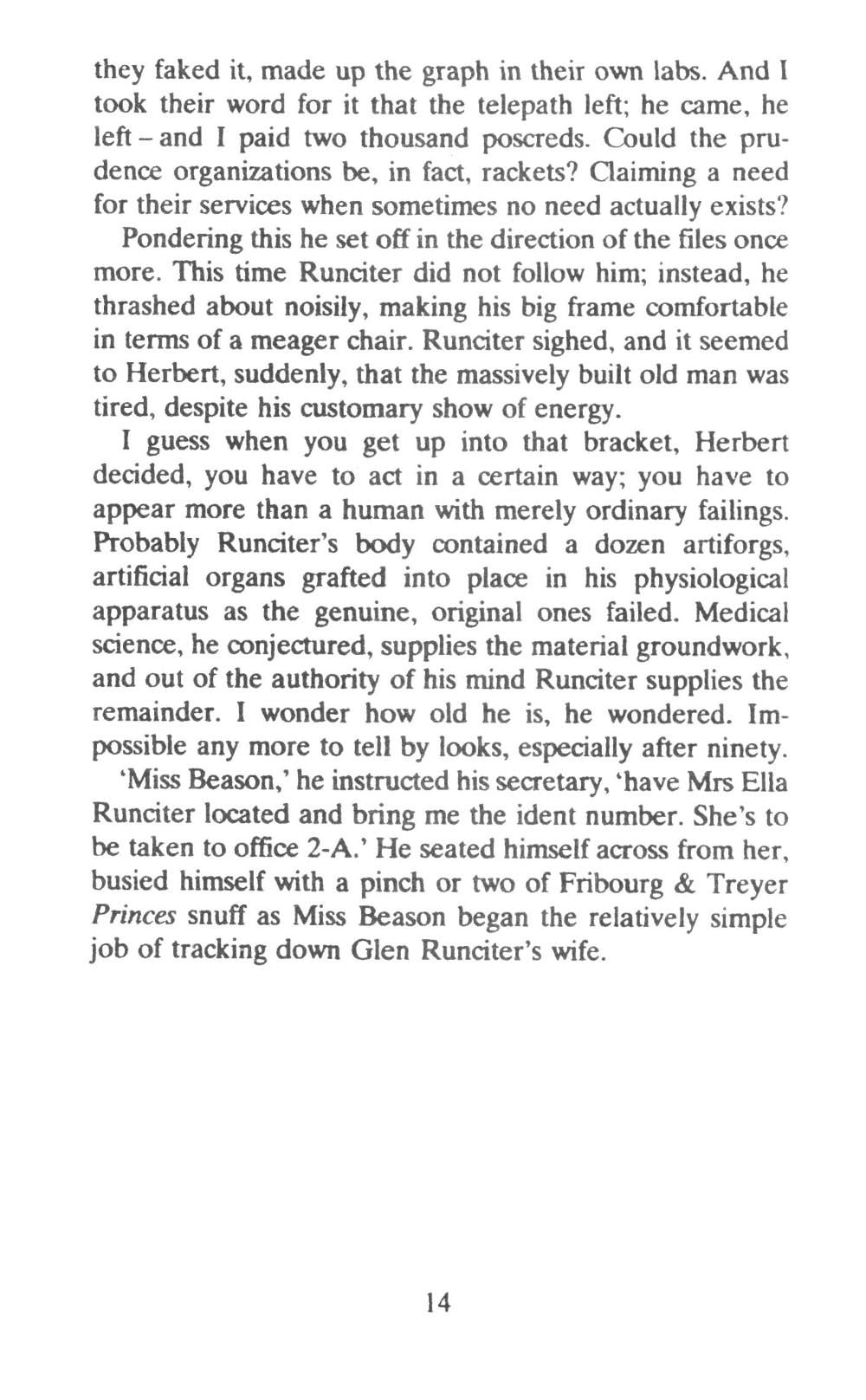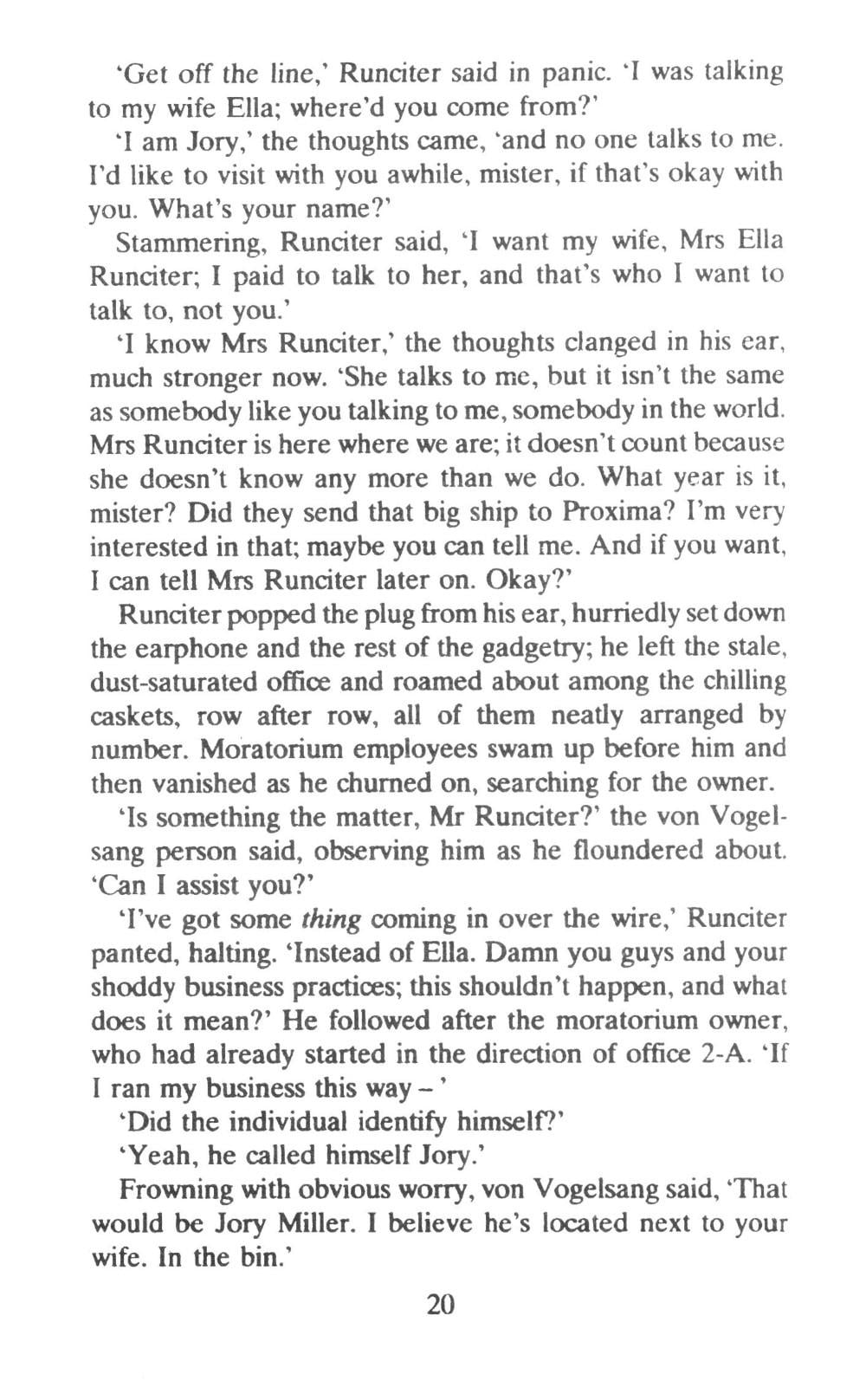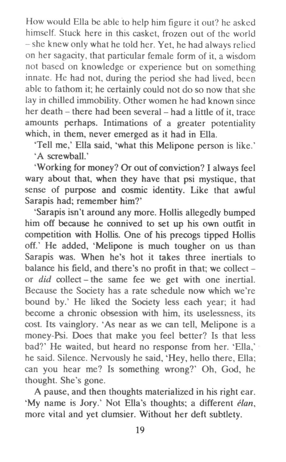 Glen Runciter runs a lucrative business - deploying his teams of anti-psychics to corporate clients who want privacy and security from psychic spies. But when he and his top team are ambushed by a rival, he is gravely injured and placed in «half-life,» a dreamlike state of suspended animation. Soon, though, the surviving members of the team begin experiencing some strange phenomena, such as Runciter's face appearing on coins and the world seeming to move backward in time. As consumables deteriorate and technology gets ever more primitive, the group needs to find out what is causing the shifts and what a mysterious product called Ubik has to do with it all.| Издательство | Orion |