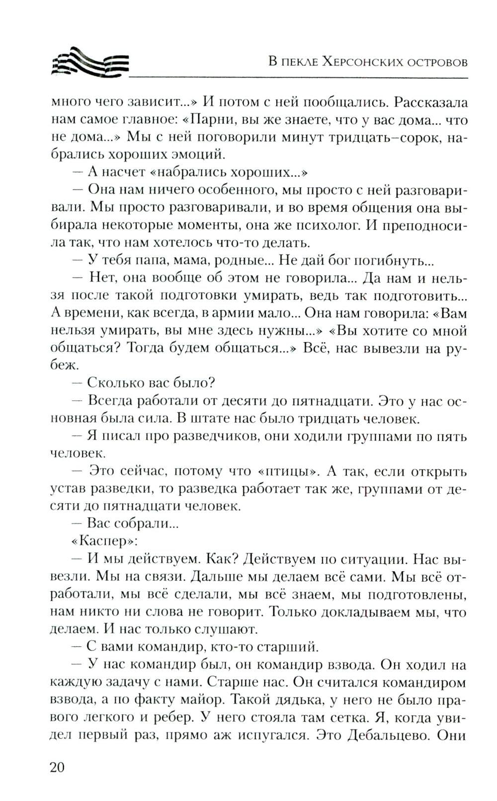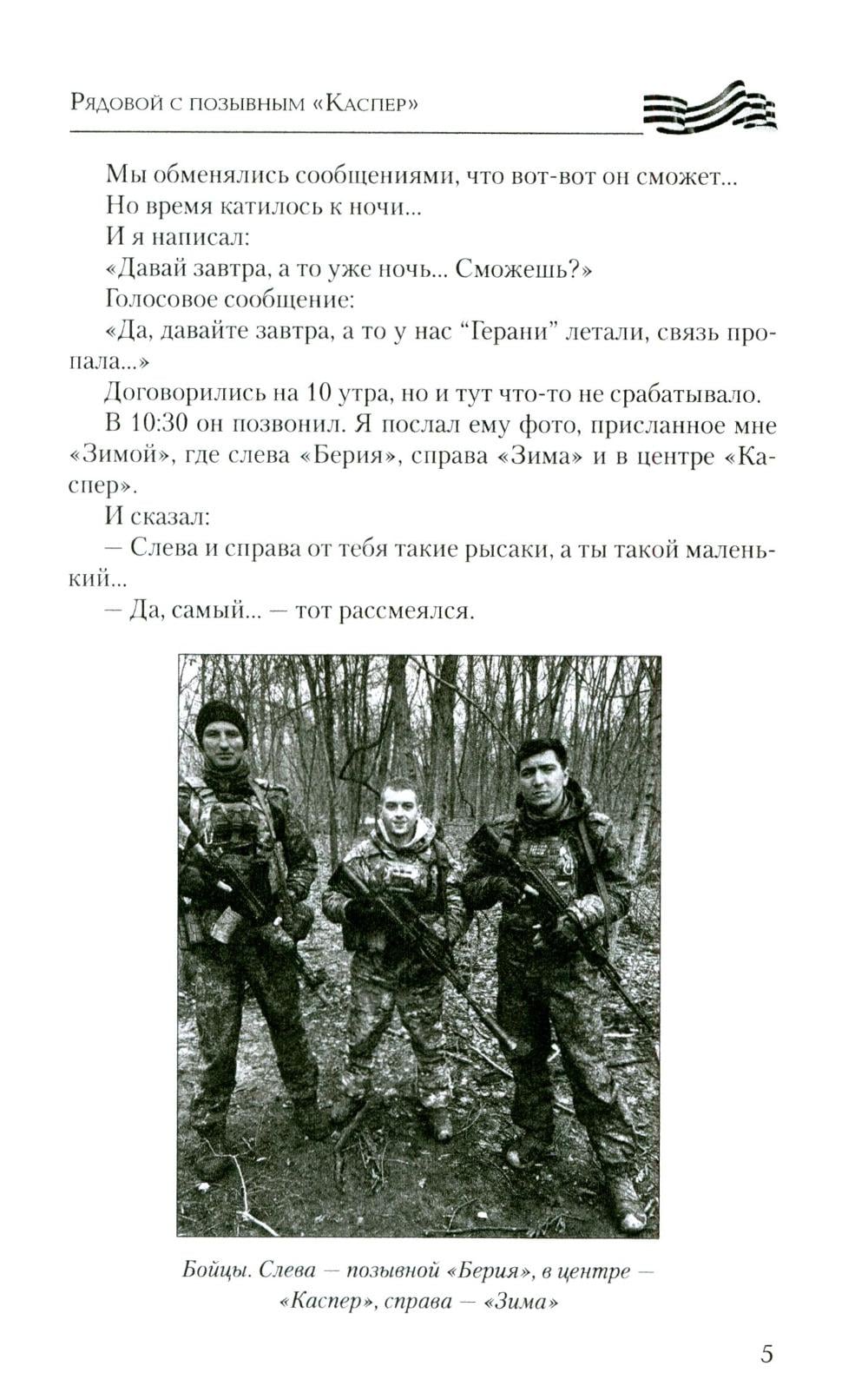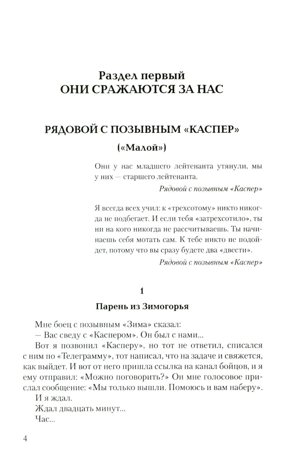 Эта книга насыщена судьбами неравнодушных к своей Родине парней и дочерей, перед которыми не стоял выбор - защищать Родину или нет. Не было выбора у рядового из Зимогорья с позывным «Каспер», который с восемнадцати лет совершал дерзкие рейды в тыл врага под Луганском, на СВО дошел до Николаева, охранял Каховскую ГЭС и сейчас бьется за Херсонские острова; о бывшем вагнеровце, ефрейторе Казилине, который прикрывал своих бойцов, пытался сбить «Бабу-ягу» и сбросами с двух «птичек» был ранен, и двадцать семь часов выползал к своим; о рядовом Василии с позывным «Луганск» родом из Красного Луча, который на себе испытал ужасы Майдана, в 4-й казачьей бригаде брал в плен девяносто восемь украинских военных, раскручивал наведенные противником понтонные мосты, и те уплывали… Об отдавших свои жизни капитане Бочарове, сержанте Пономареве, старшем сержанте Камязине, о бойцах двух районов - Хохольского и Терновского - Воронежской области. Рассказано о жемчужине России - Железноводске, чьи сыны воевали и воюют, а режиссер и актер Сергей Пускепалис первым в России повез труппу со спектаклем в Донецк и Луганск… О бригаде «швейбате» из Бурятии, сутками шьющей масксети, термоплащи, антидроновые одеяла, шевроны для бойцов СВО…| Издательство | Вече |