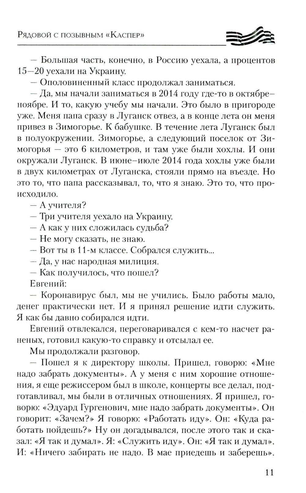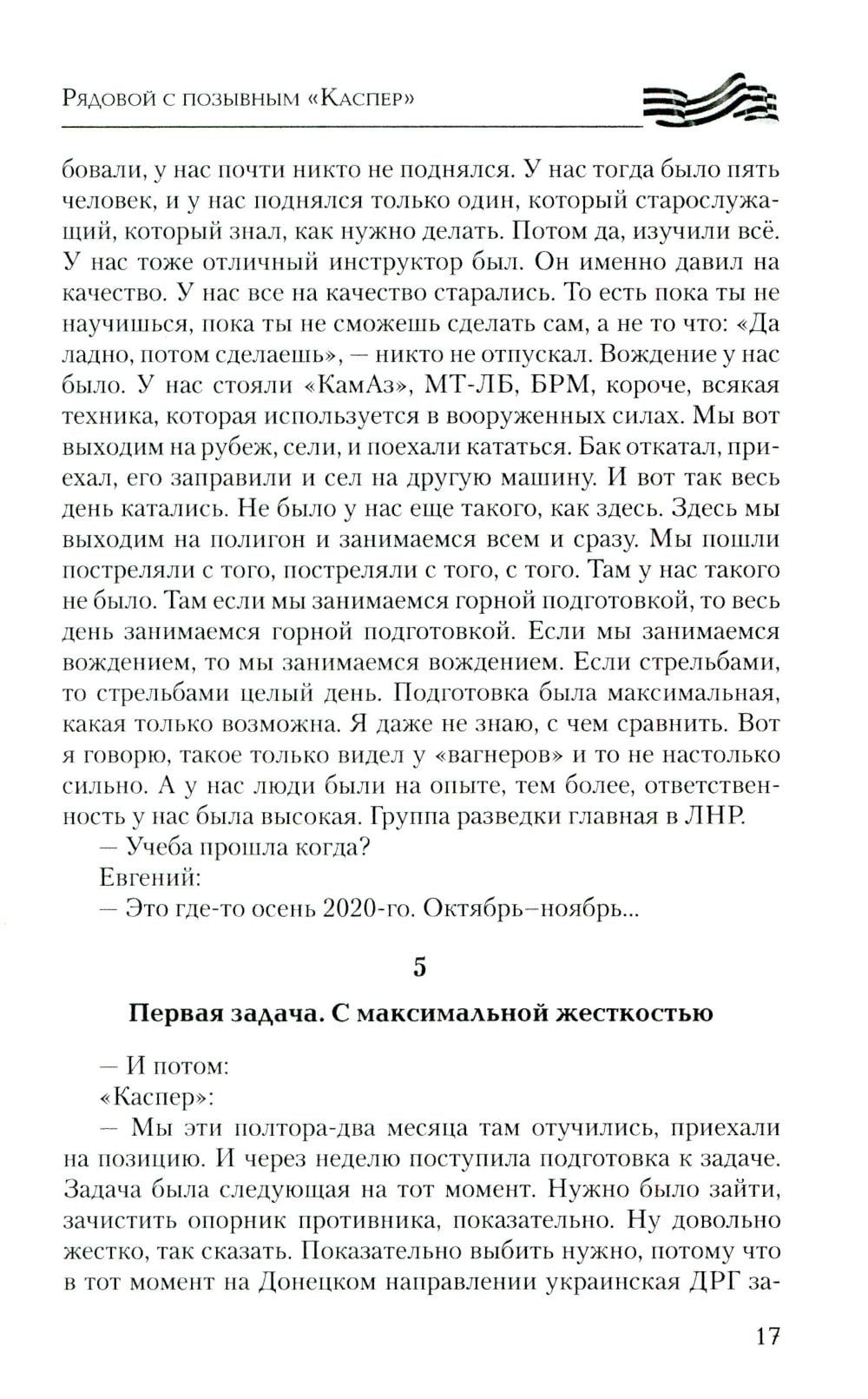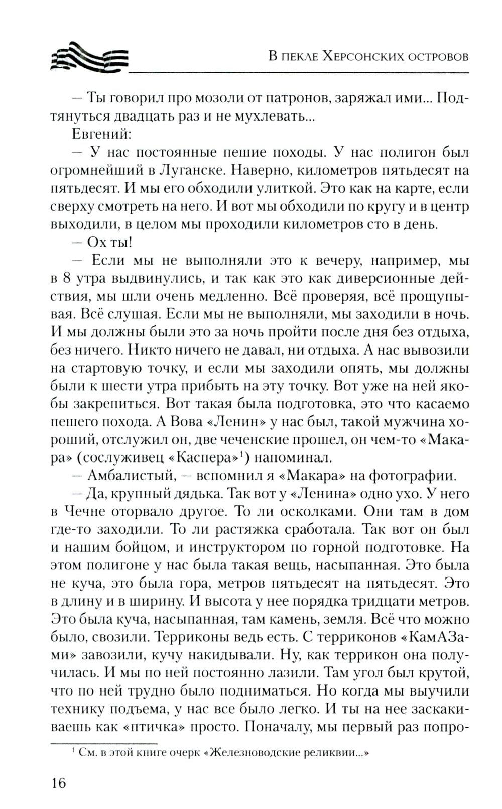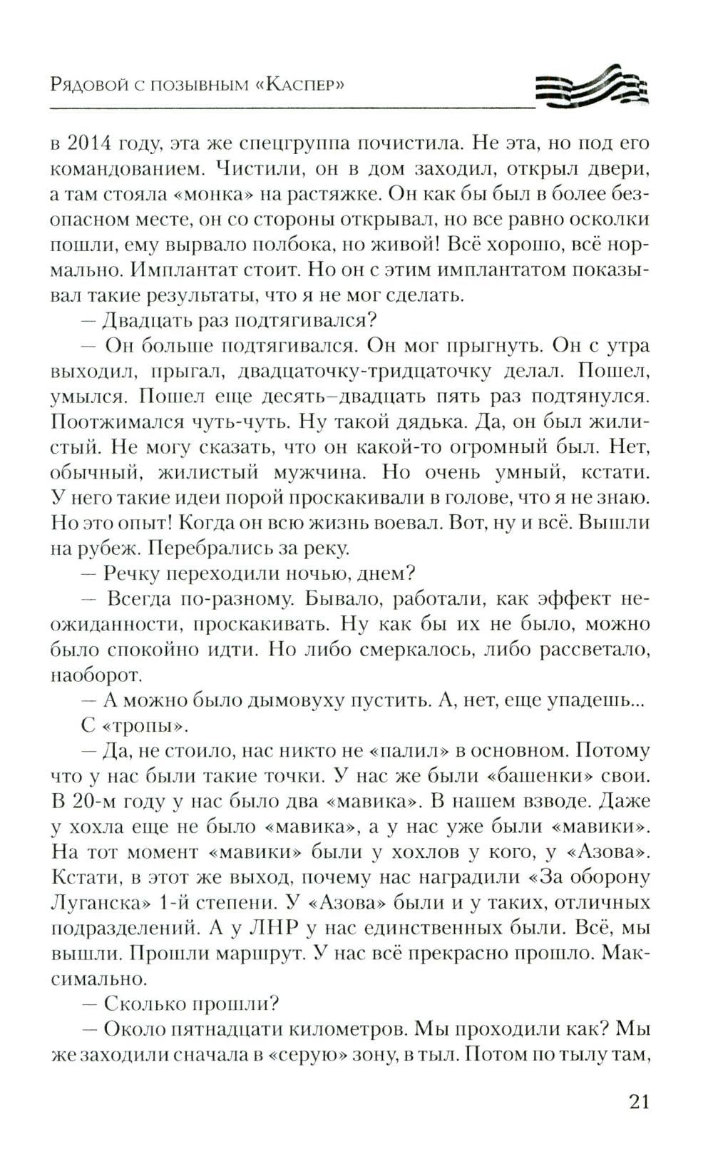 Эта книга насыщена судьбами неравнодушных к своей Родине парней и дочерей, перед которыми не стоял выбор - защищать Родину или нет. Не было выбора у рядового из Зимогорья с позывным «Каспер», который с восемнадцати лет совершал дерзкие рейды в тыл врага под Луганском, на СВО дошел до Николаева, охранял Каховскую ГЭС и сейчас бьется за Херсонские острова; о бывшем вагнеровце, ефрейторе Казилине, который прикрывал своих бойцов, пытался сбить «Бабу-ягу» и сбросами с двух «птичек» был ранен, и двадцать семь часов выползал к своим; о рядовом Василии с позывным «Луганск» родом из Красного Луча, который на себе испытал ужасы Майдана, в 4-й казачьей бригаде брал в плен девяносто восемь украинских военных, раскручивал наведенные противником понтонные мосты, и те уплывали… Об отдавших свои жизни капитане Бочарове, сержанте Пономареве, старшем сержанте Камязине, о бойцах двух районов - Хохольского и Терновского - Воронежской области. Рассказано о жемчужине России - Железноводске, чьи сыны воевали и воюют, а режиссер и актер Сергей Пускепалис первым в России повез труппу со спектаклем в Донецк и Луганск… О бригаде «швейбате» из Бурятии, сутками шьющей масксети, термоплащи, антидроновые одеяла, шевроны для бойцов СВО…| Издательство | Вече |