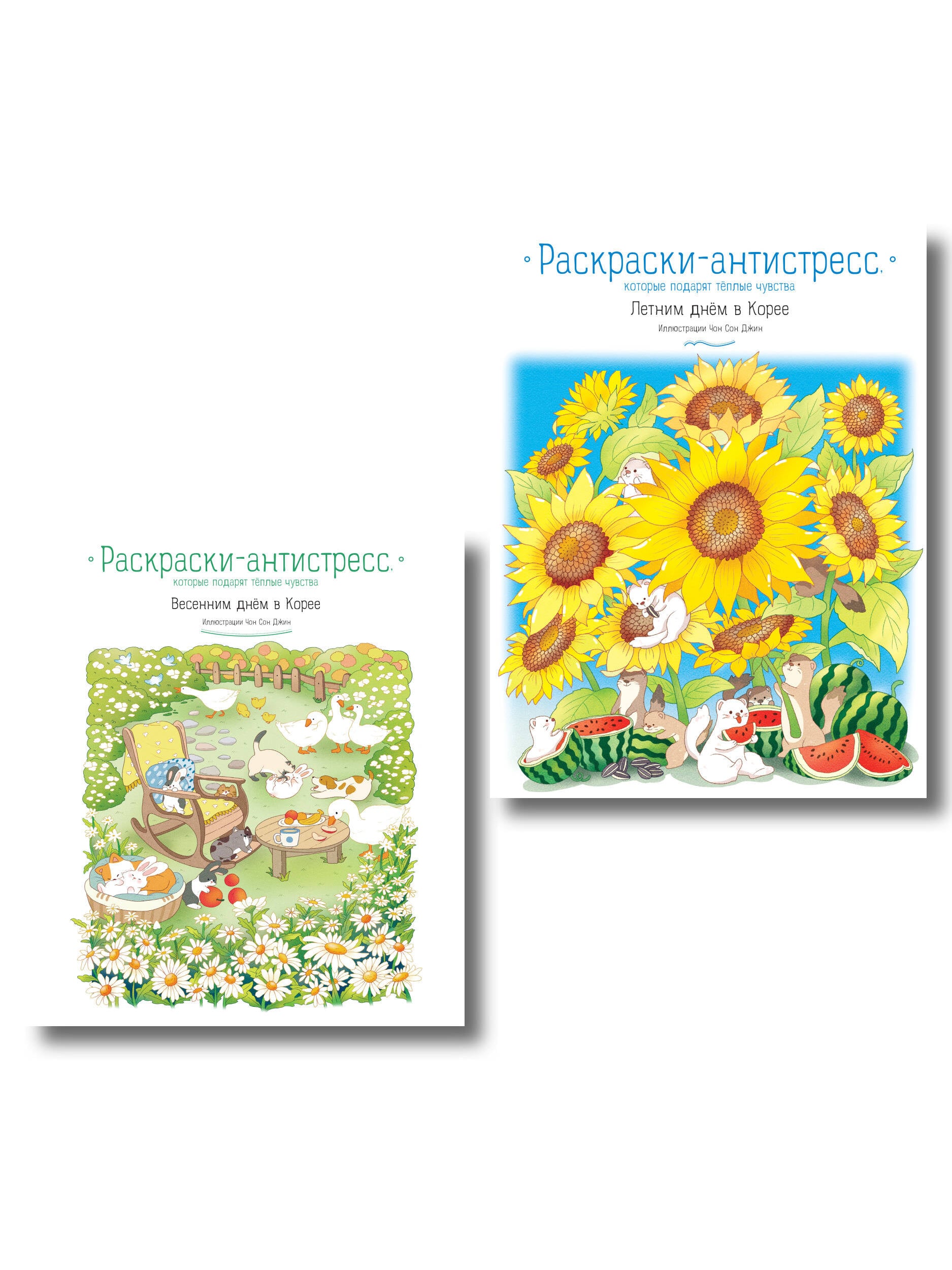 Комплект из 2 раскрасок-антистресс. Весенним днем в Корее + Летним днем в Корее (ИК)