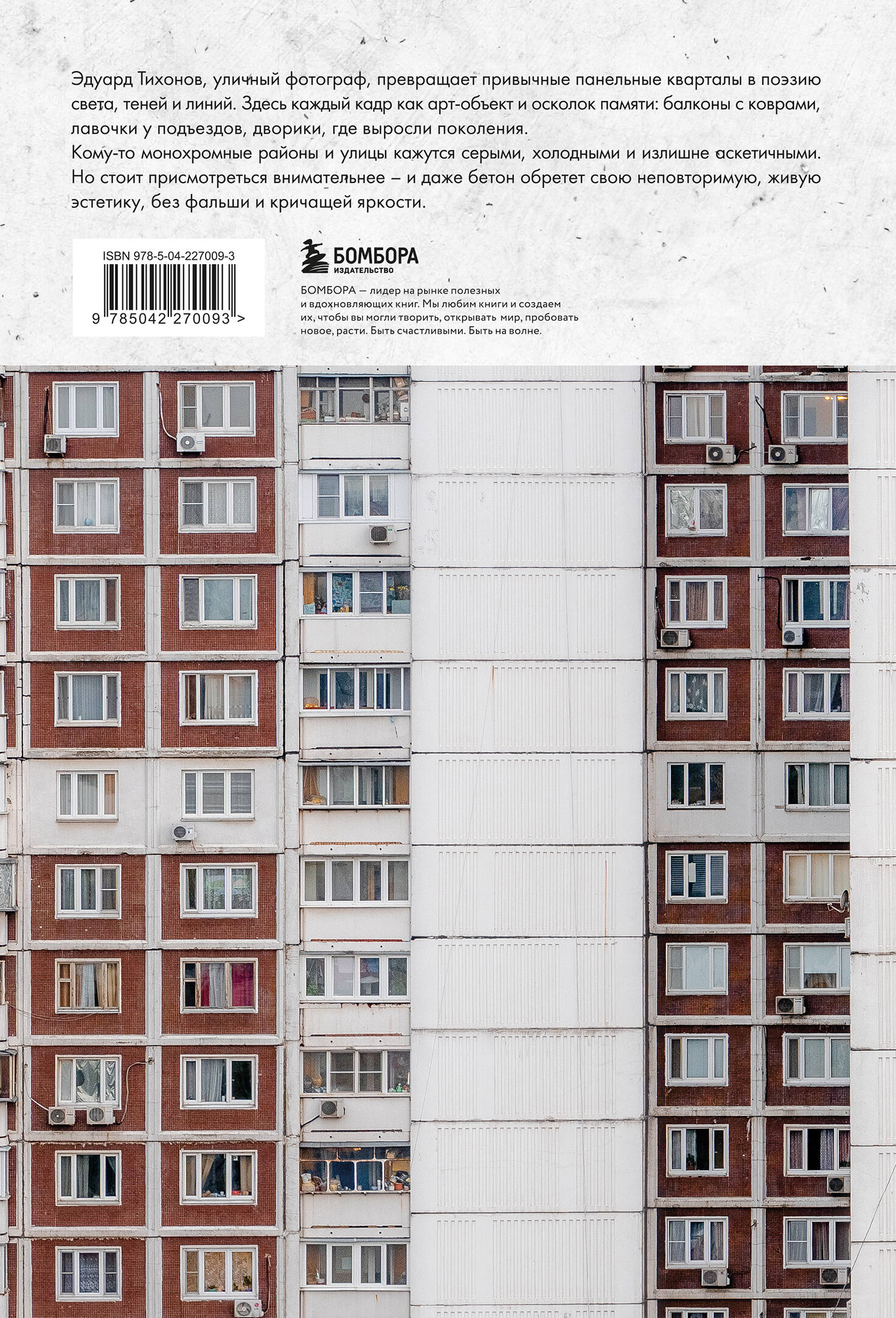 Перед вами - больше, чем фотоальбом. Это арт-объект, в котором привычные панельные кварталы превращаются в поэзию бетона и света. Фотограф Эдуард Тихонов с редкой чуткостью запечатлел ту самую архитектуру, что формировала наш повседневный мир: серые фасады, дворы, балконы и силуэты домов, знакомые каждому с детства. Эта книга - уникальный подарок для тех, кто ценит городскую эстетику, уличную фотографию и честный взгляд на жизнь. Каждая страница здесь наполнена ностальгией и неожиданной красотой, которая прячется в типовом жилье. Это издание возвращает нас к воспоминаниям, делает их зримыми и превращает в настоящее искусство. Фотографии панелек - это не просто хроника архитектуры, а портрет целой эпохи, вписанной в бетон. Листая книгу, вы поймаете то самое чувство «дома», которое живет в каждом из нас.