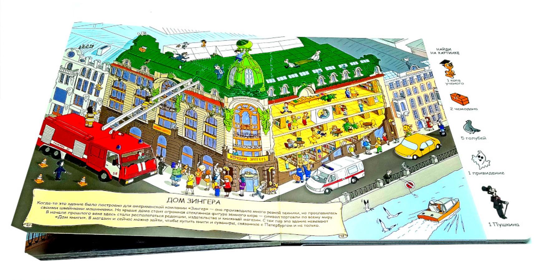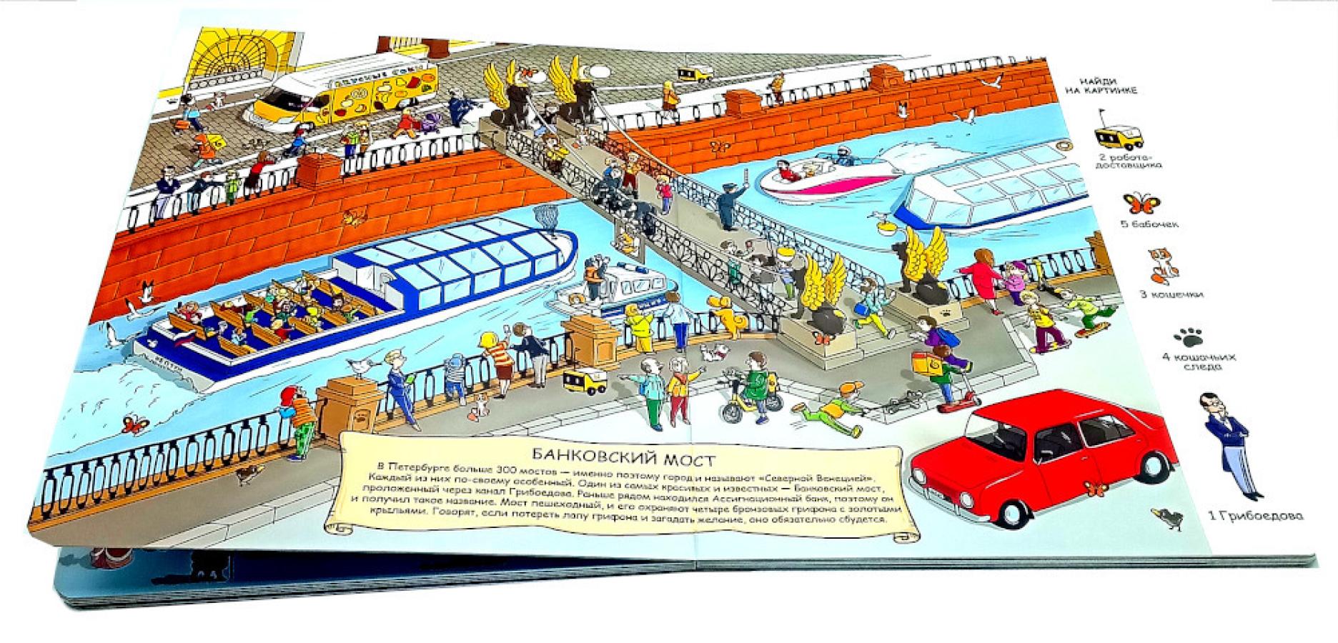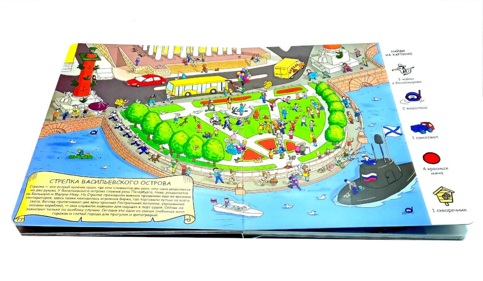 «Найди в Петербурге» - развивающая книга-игра для детей! Яркий виммельбух перенесет юных исследователей на Дворцовую площадь, Невский проспект, праздник «Алые паруса», в Петергоф и в другие знаменитые уголки Северной Венеции. На каждом из 8 разворотов спрятаны десятки предметов, животных и героев, связанных с культурой и историей города, а также емкие описания каждой достопримечательности, чтобы узнавать Петербург стало еще интереснее.| Издательство | Эксмо |