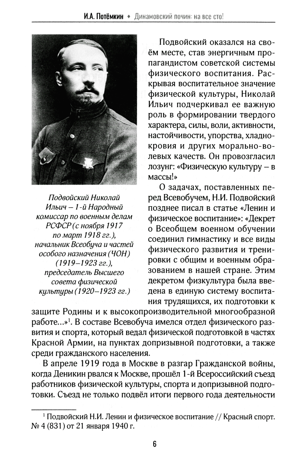 Перед вами сборник документальных очерков, посвящённый славному пути Всероссийского физкультурно-спортивного общества "Динамо", которое отметило в 2023 году 100-летний юбилей. Восемь очерков охватывают советский период становления и деятельности Общества в контексте развития отечественного физкультурного движения и спорта. Особое внимание уделено довоенному времени, когда и состоялось жизнеутверждение динамовского движения в турбулентности 20-30 годов молодого Советского государства. Поэтому так подробно автор останавливается на деталях, раскрывающих в книге перипетии совсем не простого, но поступательного движения вперёд в этот период - как Общества "Динамо", так и всего советского спорта. Думается, вызовет большой интерес работа Общества "Динамо" в период Великой Отечественной, которая не останавливалась ни на один день. Тернистым будет путь дальнейшего развития в послевоенное время, но неизменно вперёд и к звёздам. Отдаётся должное динамовцам-олимпийцам. Изложение построено на широком привлечение архивного материала. Многие документы приводятся впервые.