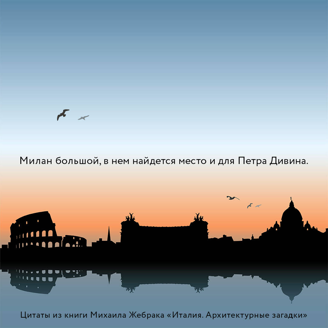 «Италия. Архитектурные загадки» - новый арт-детектив от Михаила Жебрака, действие которого разворачивается в Милане и Вероне. Хобби главного героя Петра Дивина - расследования в церквях и музеях, где уликами выступают уникальные артефакты. Все описанные в книге артефакты существуют и не покидали храмов и площадей, но тасует автор их по-своему. Если герой нашел в некоем музее картину, то и вы ее там обнаружите.| Издательство | ИЗДАТЕЛЬСТВО "АСТ" |