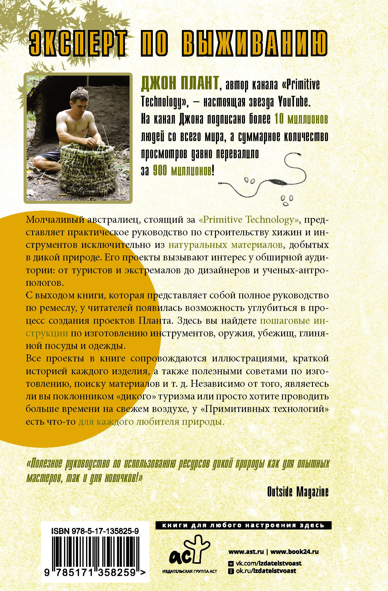 Книга Джона Планта «Примитивные технологии» станет отличным подарком для: • вашего ребенка, который каждый год возводит шалаши на даче у бабушки; • друзей и знакомых, которые не упускают возможности отдохнуть на природе; • коллег, которые увлекаются рыбалкой и турпоходами; • всех любителей смотреть «Последнего героя» и другие развлекательные шоу с элементами выживания.| Издательство | АСТ |